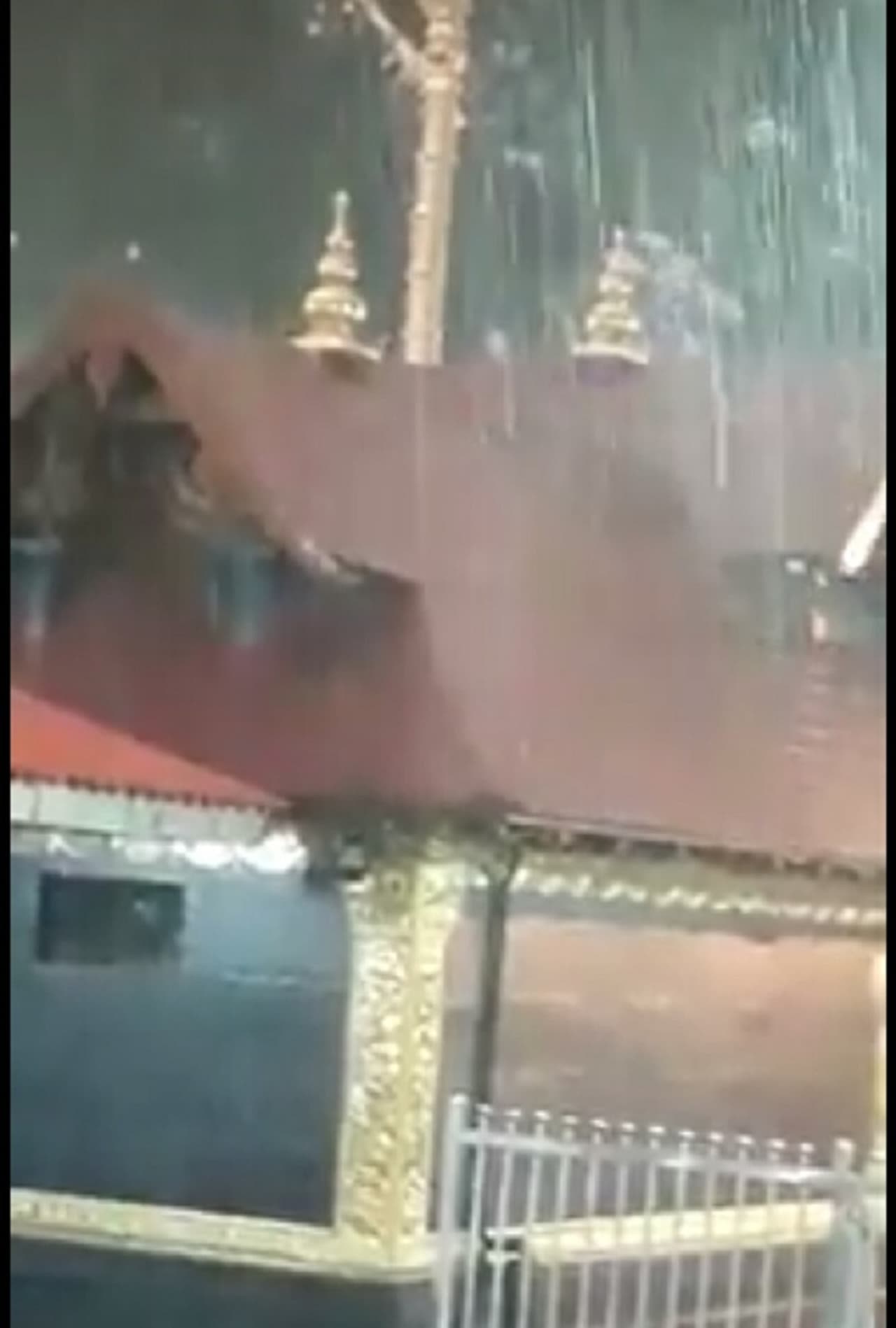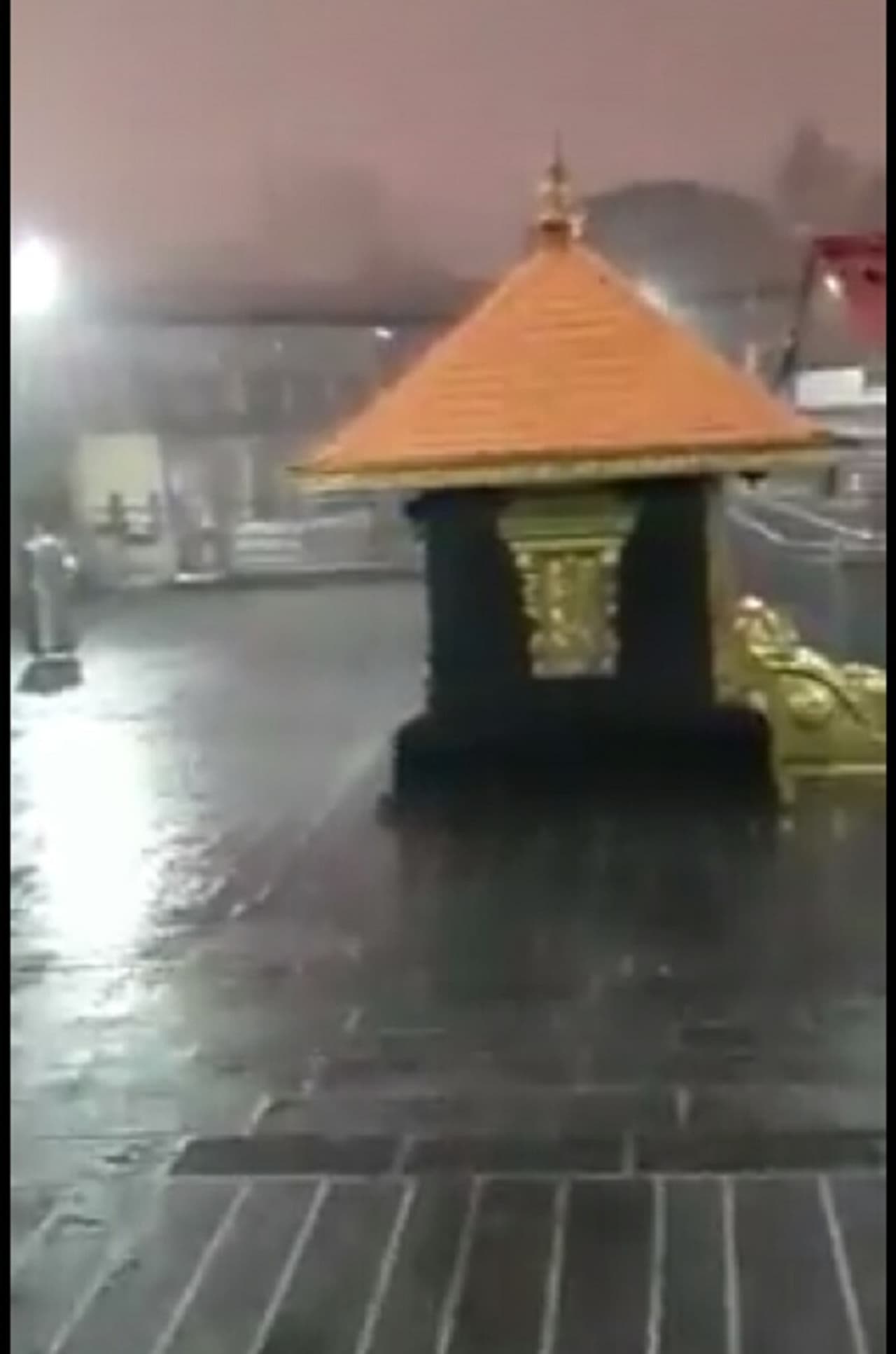 வழக்கம் போல் நிறைபுத்தரிசி பூஜை நடைபெற்றாலும் பக்தர்கள் ஒருவர் கூட இல்லாததால், கொட்டும் மழையில் தந்திரி தனியாக கோவிலில் சோகத்துடன் அமர்ந்திருக்கும் காட்சி சமூக வலைதளங்களில் வெளியாகியுள்ளது.
