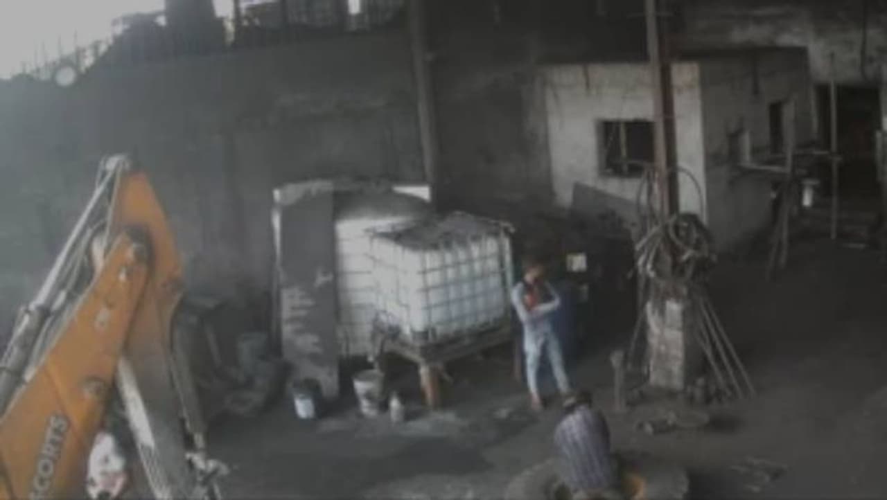 மே 3 ஆம் தேதி சத்தீஸ்கர் மாநிலத்தின் ராய்பூர் மாவட்டத்தின் சில்தாரா தொழிற்பேட்டை பகுதியில் இந்த சம்பவம் அரங்கேறி இருக்கிறது. இந்த சம்பவம் அதே பகுதியில் இருந்த சி.சி.டி.வி. கேமராவில் பதிவாகி இருக்கிறது.