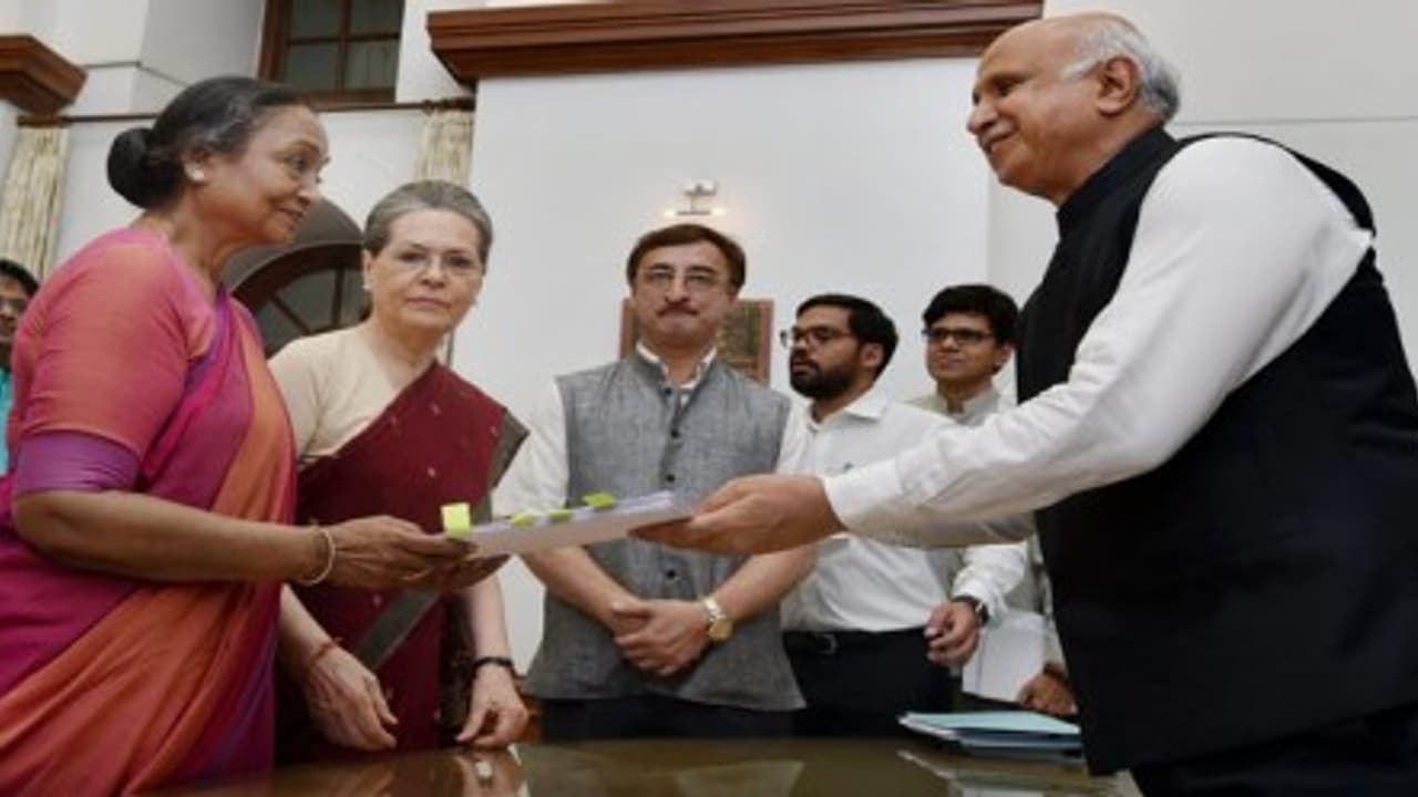 மீரா குமாரின் வேட்புமனுவை, சோனியா காந்தியும், காங்கிரஸ் கட்சியின் மூத்த தலைவர்களும், தி.மு.க. செயல்தலைவர் மு.க.ஸ்டாலின் உள்ளிட்டோர் முன்மொழிந்தனர்.