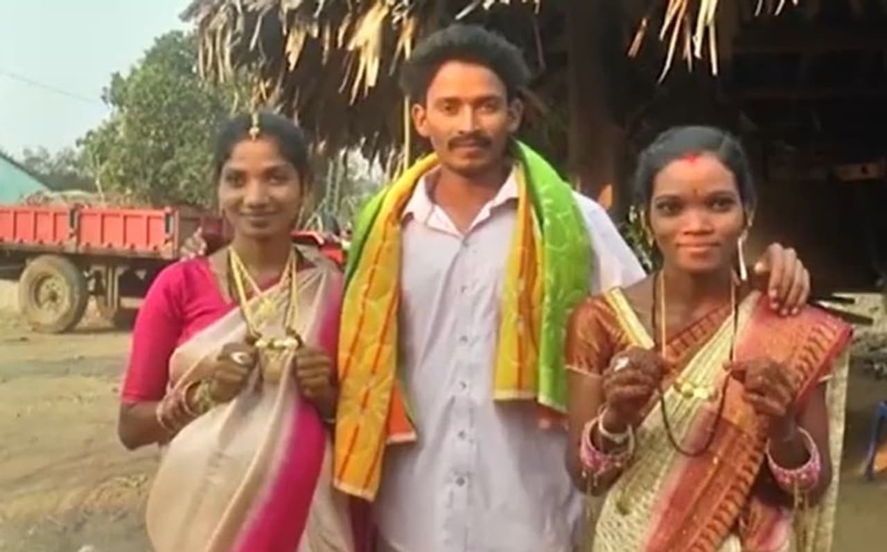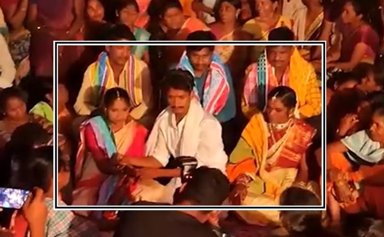 தெலங்கானாவில் பழங்குடியின ஆண் ஒருவர் ஒரே மேடையில் இரண்டு பெண்களை திருமணம் செய்துக்கொண்ட வீடியோ இணையத்தில் வைரலாகி வருகிறது.