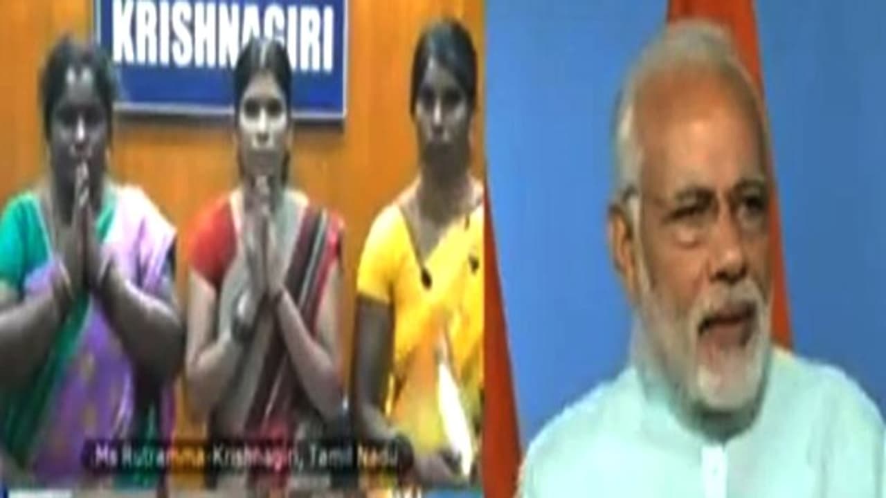 எரிவாயு மானியம் திட்டத்தினால் பயன் அடைந்துர்களா என்று பிரதமர் கேட்டார். இத்தனை ஆண்டுகளாக விறகு அடுப்பில் சமைத்து வந்தோம். விறகு அடுப்பில் சமைக்க கஷ்டமாக இருந்தது என்றார் ருத்ரம்மா. இட்லி, தோசை போன்ற உணவுகளைச் சமைக்க சிரமமாக இருந்ததா? என்றார் மோடி.