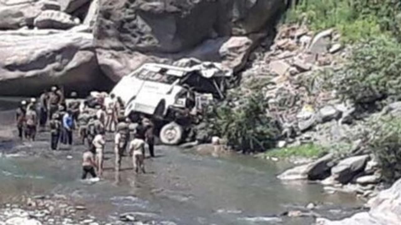 ஜம்மு காஷ்மீர் நெடுஞ்சாலையில் அமர்நாத் யாத்ரீகர்கள் பேருந்தில் சென்று கொண்டிருந்தனர். அப்போது நக்சலா என்ற இடத்தில் வந்து கொண்டிருந்த போது ஓட்டுநரின் கட்டுப்பாட்டை இழந்து பேருந்து தலைகீழாக கவிழ்ந்த்து.