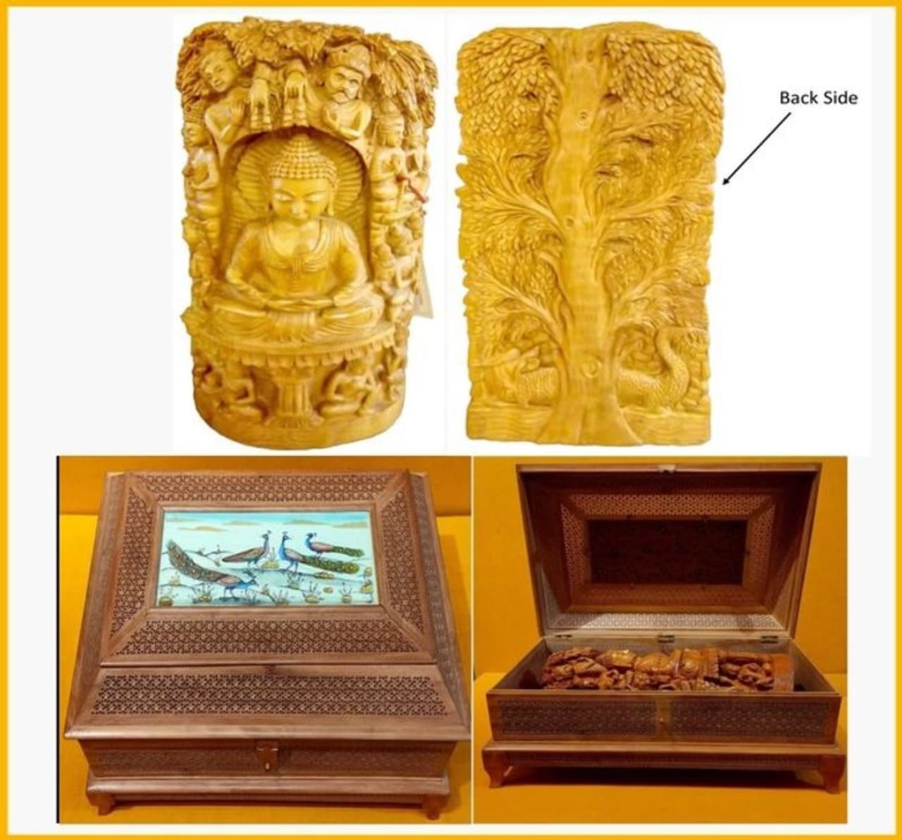 புத்தரின் உருவம் மிகவும் முக்கியத்துவம் வாய்ந்தது. அழகான அமைதி மற்றும் சக்தி வாய்ந்த சின்னமாக புத்தர் கருதப்படுகிறார். புத்தரின் இந்த சந்தன சிற்பங்கள் மிகவும் மதிப்பு வாய்ந்தவை. சேகரிப்பாளர்கள் மற்றும் ஆன்மீகத்தில் இருப்பவர்கள் இதனை தேடி வாங்குவர். இந்த புத்தர் உருவம் தூய சந்தன மரத்தில் கைவினைஞர்களால் செதுக்கப்பட்டது. இதில் பாரம்பரிய வடிவமைப்புகள் மற்றும் இயற்கை காட்சிகள் அடங்கியிருக்கும். மேலும் இதில் புத்தர் போதி மரத்தின் கீழ் தியான முத்திரையில் அமர்ந்திப்பார். இது பாரம்பரியத்தை நினைவுப்படுத்தும் வகையில் அமைந்துள்ளது. போதி மரத்தின் கீழ் தியானம் செய்யும் போதுதான் புத்தருக்கு ஞானம் கிடைத்தது. அதனை நினைவுப்படுத்தும் வகையில் இந்த சிலை உருவாக்கப்பட்டுள்ளது. மேலும் இந்த சிலையின் முன்புறம் சிக்கலான செதுக்கலைக் கொண்டுள்ளது. பின் புறம் போதிமரம் செதுக்கப்பட்டிருக்கும்.