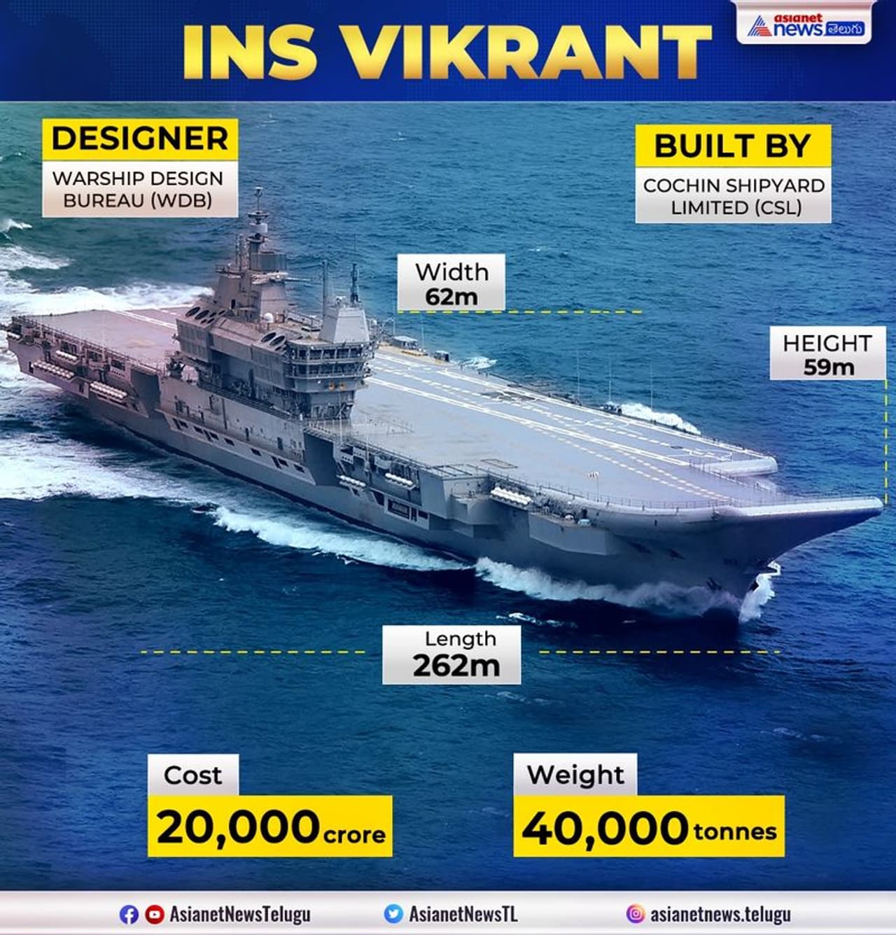 ஐஎன்எஸ் விக்ராந்த் போர் மற்றும் விமானம்தாங்கிக் கப்பல் முற்றிலும் உள்நாட்டிலேயே கட்டப்பட்டது. கடந்த 13 ஆண்டுகளாக கடும் உழைப்புக்குப்பின் ரூ.20ஆயிரம் கோடி மதிப்பில் ஐஎன்எஸ் விக்ராந்த் கப்பல் கட்டப்பட்டுள்ளது.