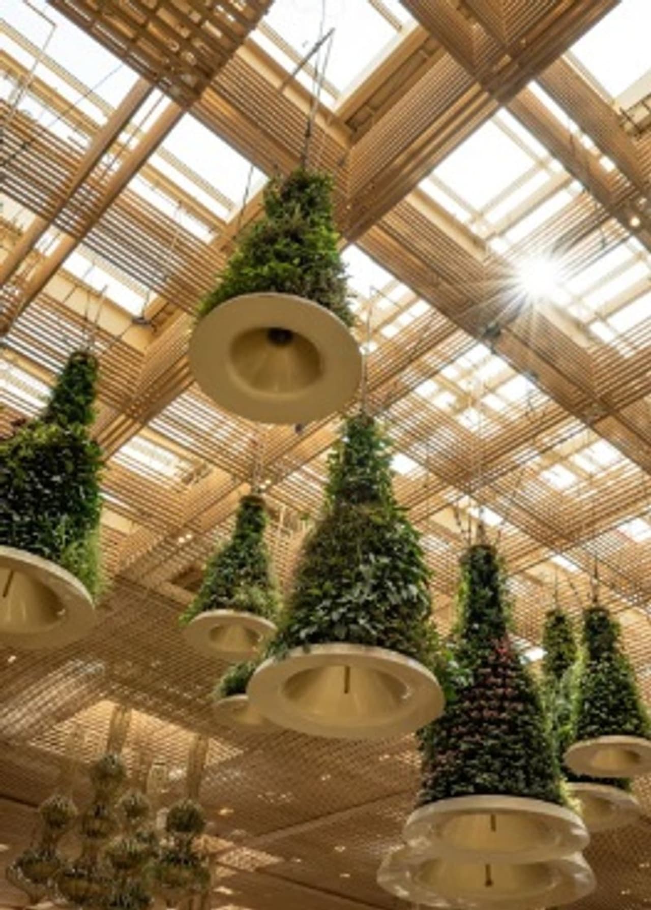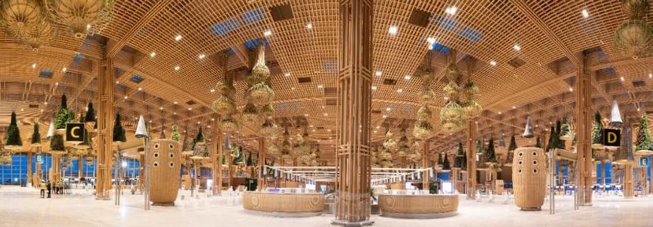 பயணிகள் டெர்மினல் 2க்குள் செல்லும்போது தோட்டத்தில் நடப்பதைப் போன்ற உணர்வை ஏற்படுத்தும் என்று கூறப்பட்டுள்ளது. 10,000 சதுர மீட்டர் பரப்பளவு கொண்ட விமான நிலையத்தின் உள்கட்டமைப்பு பசுமை சுவர்கள், தொங்கும் தோட்டங்கள் மற்றும் வெளிப்புற தோட்டங்கள் என வடிவமைக்கப்பட்டுள்ளது. இந்த தோட்டங்கள் உள்நாட்டு தொழில்நுட்பத்தைப் பயன்படுத்தி உருவாக்கப்பட்டுள்ளன. இந்த விமான நிலையத்தின் வளாகம் முழுவதும் 100% புதுப்பிக்கத்தக்க ஆற்றல் பயன்படுத்தப்பட்டு வருகிறது.