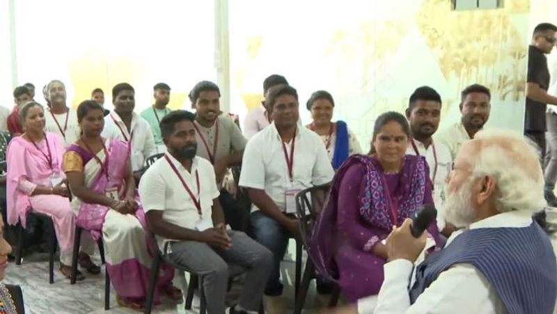 ஆபரேஷன் காவேரி நடவடிக்கையின் சூடானில் இருந்து வெளியேற்றப்பட்ட ஹக்கி பிக்கி பழங்குடியினருடன் பிரதமர் மோடி உரையாடினார்.
