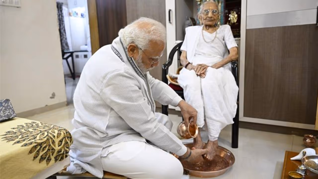 இதனிடையே பிரதமர் மோடியின் தாயார் ஹீரா பென் இன்று தனது 100வது பிறந்தநாளை கொண்டாடுகிறார். இந்நிலையில், தனது தாயாரான ஹீராபென்னின் பிறந்தநாளையொட்டி, காந்திநகரில் உள்ள அவரது இல்லத்தில் நேரில் சென்று ஆசிபெற்றார். பின்னர், இனிப்பு வழங்கியதுடன் தயாருக்கு பிரதமர் மோடி பாதபூஜை செய்தார். இது தொடர்பான வீடியோக்கள் மற்றும் போட்டோக்களும் இணையத்தில் வெளியாகி வைரலாகி உள்ளது.