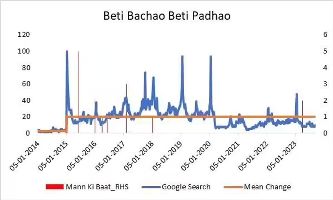"Beti Bachao Beti Padhao" திட்டம், அதாவது மகளை காப்பாற்றுங்கள், மகளுக்கு கல்வி கொடுங்கள் என்று பெண் குழந்தைகளுக்கு எதிராக நடக்கும் வன்முறைக்கு எதிராக இந்திய அரசால் துவங்கப்பட்ட ஒரு சட்டம். கடந்த 2015ம் இந்த திட்டம் துவங்கப்பட்ட நிலையில், மன் கி பாத் மூலம் இந்த திட்டம் இன்னும் அதிகமான நபர்களை சென்றடைந்தது என்று ஆய்வு கூறுகின்றது.