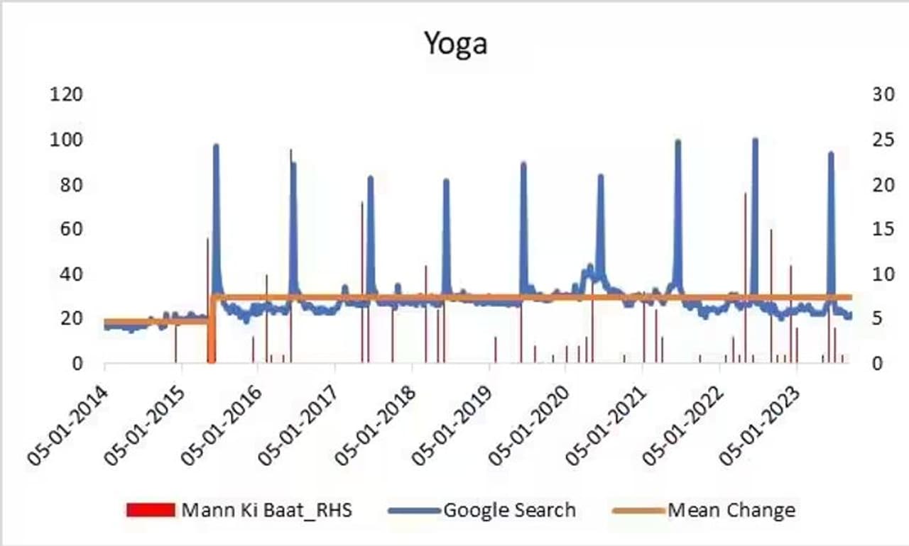 காலங்காலமாக நம் இந்திய மண்ணில் இருந்து வரும் ஒரு விஷயம் தான் யோகா, ஆனால் கடந்த 2015ம் ஆண்டு மே மற்றும் ஜூன் மாதங்களில் நடந்த மன் கி பாத் நிகழ்வில் யோகா குறித்து பல விஷயங்கள் பேசப்பட்டது. யோகாவின் முக்கியத்துவம் மற்றும் அதன் நன்மைகள் குறித்து பல விஷயங்கள் மன் கி பாத் நிகழ்வில் கலந்துரையாடப்பட்டுள்ளது. அதன் விளைவாக உலக அளவில், குறிப்பாக யோகா குறித்த கூகுள் தேடல் பெரிய அளவில் பிரபலம் அடைந்துள்ளது.