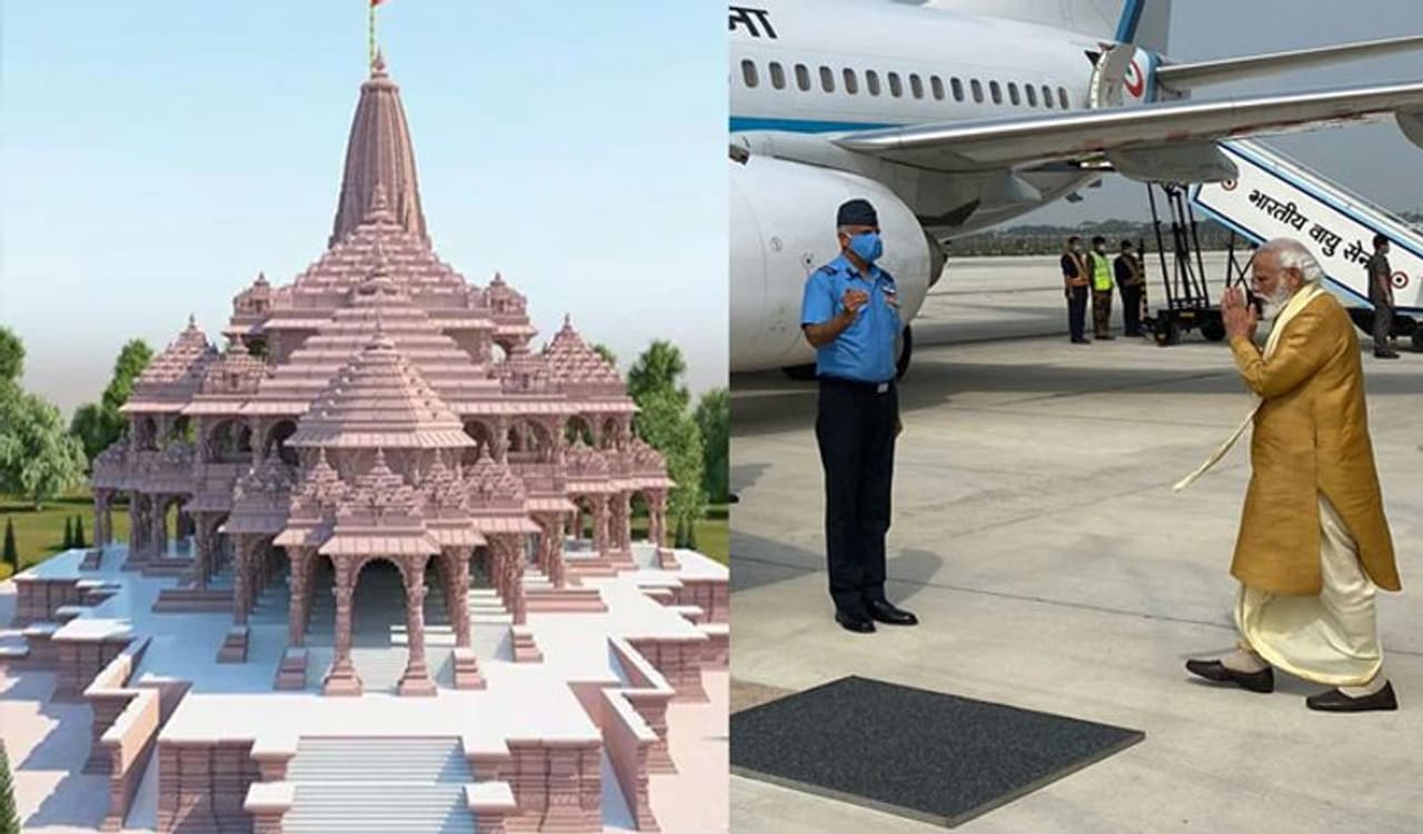 இந்நிலையில், காரில் விழா நடைபெறும் இடத்திற்கு வந்த பிரதமர் மோடி முன்னதாக ஹனுமன் கர்கி கோயிலுக்கு சென்று வழிபாடு செய்தார். அப்போது கொரோனா காலம் என்பதால் கைகளை கழுவிய மோடி வழிப்பாட்டுக்கு பிறகு கோயில் பிரகாரத்தை சுற்றி வந்தார். அவருடன் மாநில முதல்வர் யோகி ஆதித்யநாத் இருந்தது குறிப்பிடத்தக்கது.
