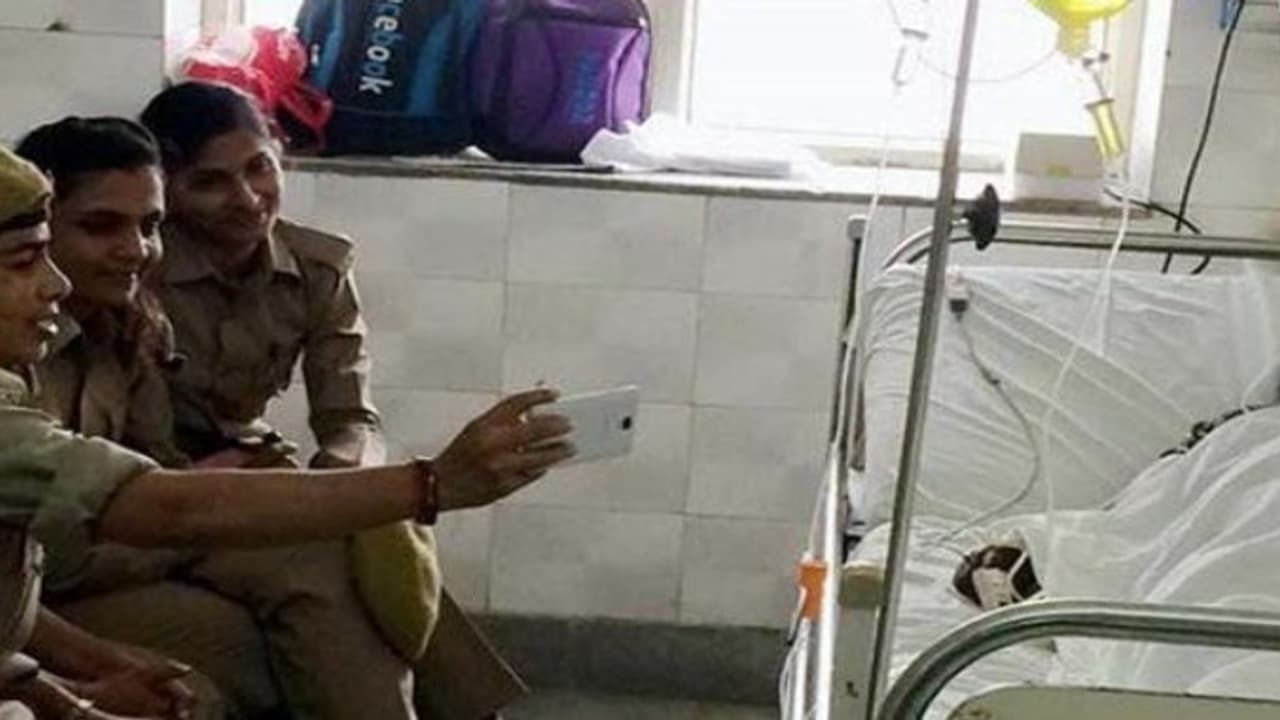 உத்தரப்பிரதேச மாநிலத்தில், மருத்துவமனையில் அனுமதிக்கப்பட்டிருந்த உயிருக்கு போராடும் ஒரு பெண்ணுடன், 3 போலீசார் செல்பி எடுத்துக் கொண்ட சம்பவம் பெரும் பரபரப்பை ஏற்படுத்தி உள்ளது.