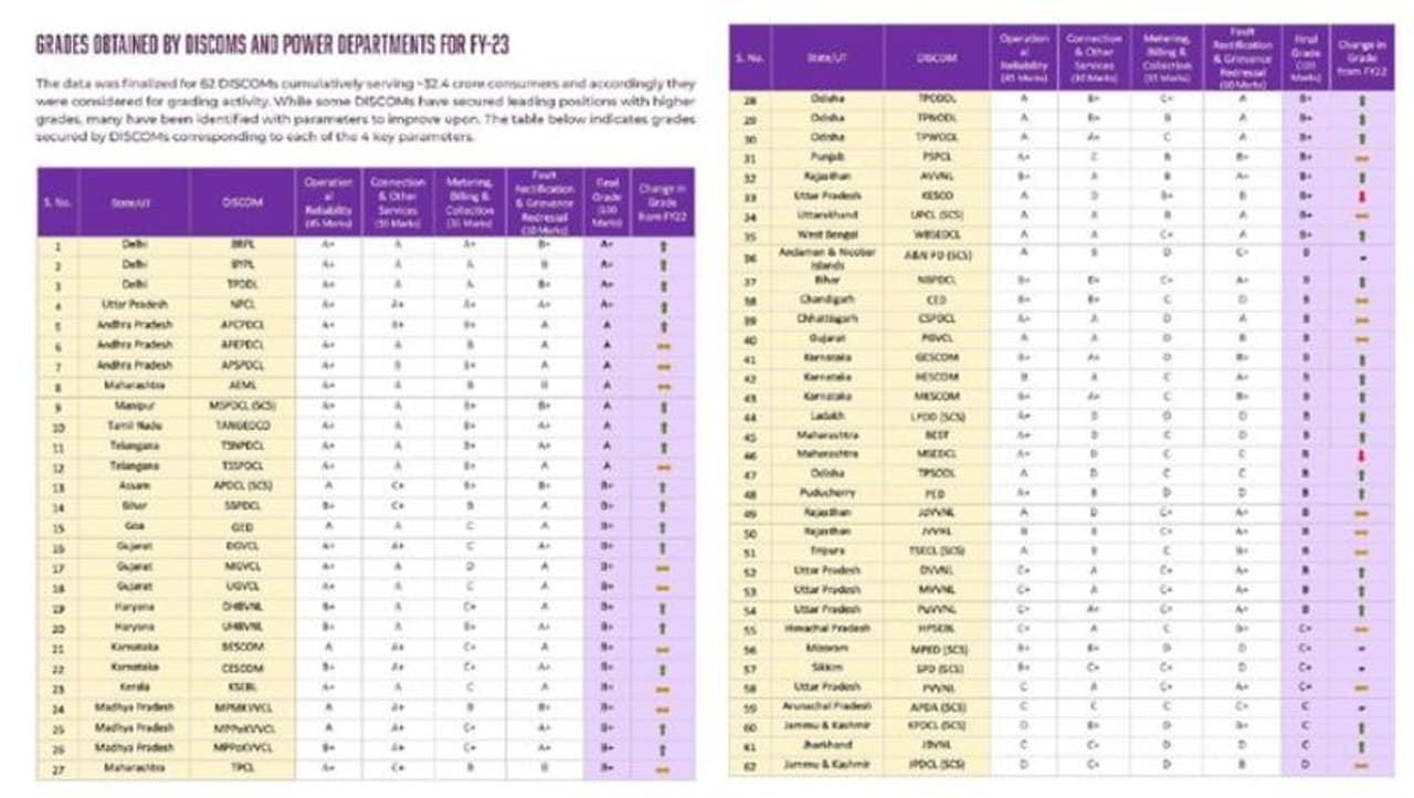 இந்த நிகழ்வின் போது, 2022-23 நிதியாண்டிற்கான டிஸ்காம்களின் செயல்திறனை உள்ளடக்கிய டிஸ்காம்களின் நுகர்வோர் சேவை மதிப்பீடுகளின் மூன்றாவது பதிப்பை அமைச்சர் சிங் தொடங்கி வைத்தார். NPCL (உத்தர பிரதேசம்), BRPL (டெல்லி), BYPL (டெல்லி), மற்றும் TPDDL (டெல்லி) ஆகியவை நாட்டிலுள்ள 62 ரேட்டிங் பெற்ற டிஸ்காம்களில் மிக உயர்ந்த A+ தரவரிசையைப் பெற்றுள்ளன.