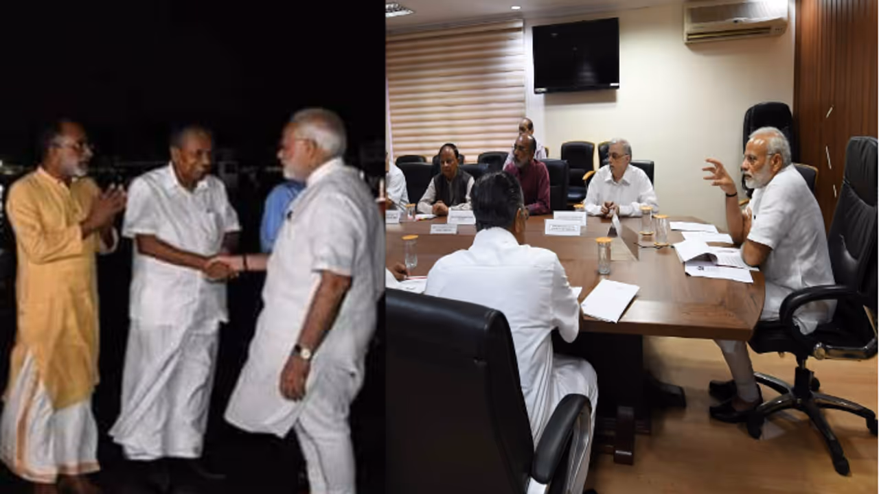 கேரள முதல்வர் பினராயி விஜயன் மற்றும் உயரதிகாரிகளுடன் பிரதமர் மோடி ஆலோசனை நடத்திவருகிறார்.