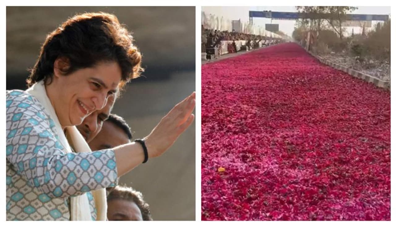 பிரியங்கா சாலையின் இருபுறங்களிலும் திரண்டிருந்த தொண்டர்களை நோக்கி புன்னகையுடன் கை அசைத்துக்கொண்டே காரில் ஊர்வலமாகச் சென்றார். இருபுறமும் நின்றிருந்த தொண்டர்களும் அவர் மீது ரோஜா இதழ்களைத் தூவி வரவேற்பு தெரிவித்தனர். பிரியங்கா காந்திக்கு இவ்வாறு ரோஜா மலர்களைத் தூவி அமோக வரவேற்பு அளித்த காட்சி சமூக வலைத்தளங்களில் வைரலாகப் பரவி வருகிறது.