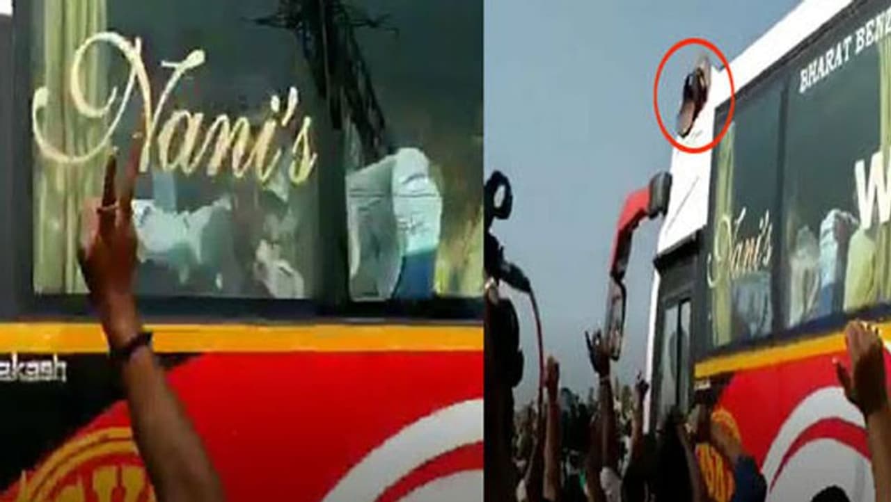 மேலும், அமராவதியில் தலைநகரை அமைக்க நிலம் கொடுத்த அந்த விவசாயிகள், அப்போது முதல்வராக இருந்த சந்திரபாபு நாயுடுவை தங்களை ஏமாற்றிவிட்டதாக கொந்தளித்தனர். பின்னர் போலீசாரின் பாதுகாப்புடன் பேருந்து அந்த இடத்தில் இருந்து புறப்பட்டு சென்றது. போராட்டத்தில் ஈடுபட்டு இருந்தவர்களில் ஒருவர் பேருந்து சென்றவுடன் அதனை நோக்கி காலணி ஒன்றை தூக்கி வீசியுள்ளார். இந்த சம்பவத்தால் அப்பகுதியில் பரபரப்பு ஏற்பட்டது.