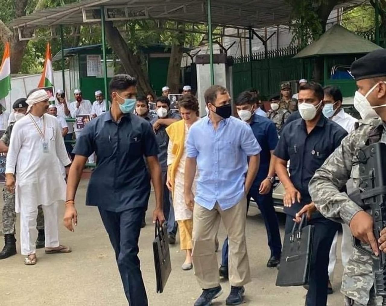 ராஜஸ்தான் முதல்வர் அசோக் கெலாட், சத்தீஸ்கர் முதல்வர் பூபேஷ் பாகல், ரன்தீப் சுர்ஜேவாலா, கே.சி.வேணுகோபால் ஆகியோர் சாலையில் நின்று ஆர்ப்பாட்டம் நடத்தினர். காங்கிரஸ் மூத்த தலைவர் ப.சிதம்பரம், பிரமோத் திவாரி ஆகியோர் ஆர்ப்பாட்டம் செய்தபோது போலீஸார் அவர்களை அப்புறப்படுத்தியபோது, சிதம்பரம் கீழே விழுந்தார். இதில் சிதம்பரத்துக்கு லேசான எலும்பு முறிவு ஏற்பட்டுள்ளதாக தகவல்கள் தெரிவிக்கின்றன
