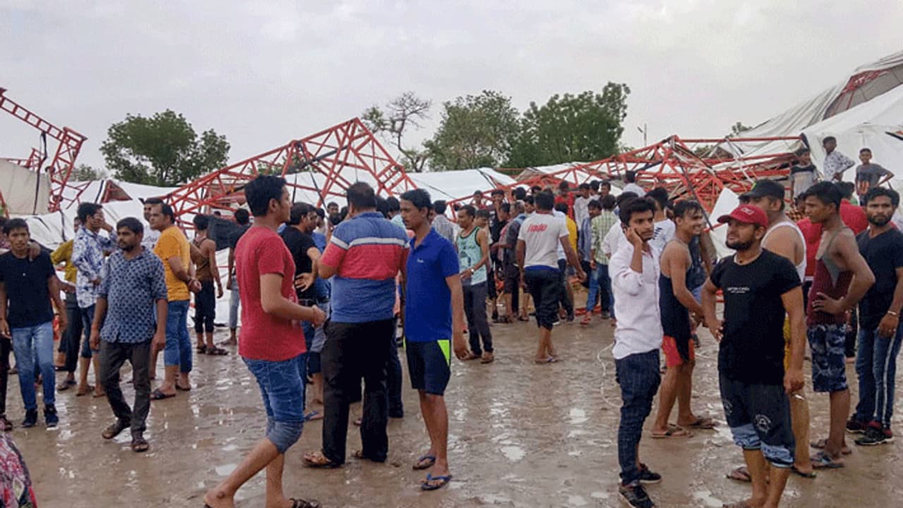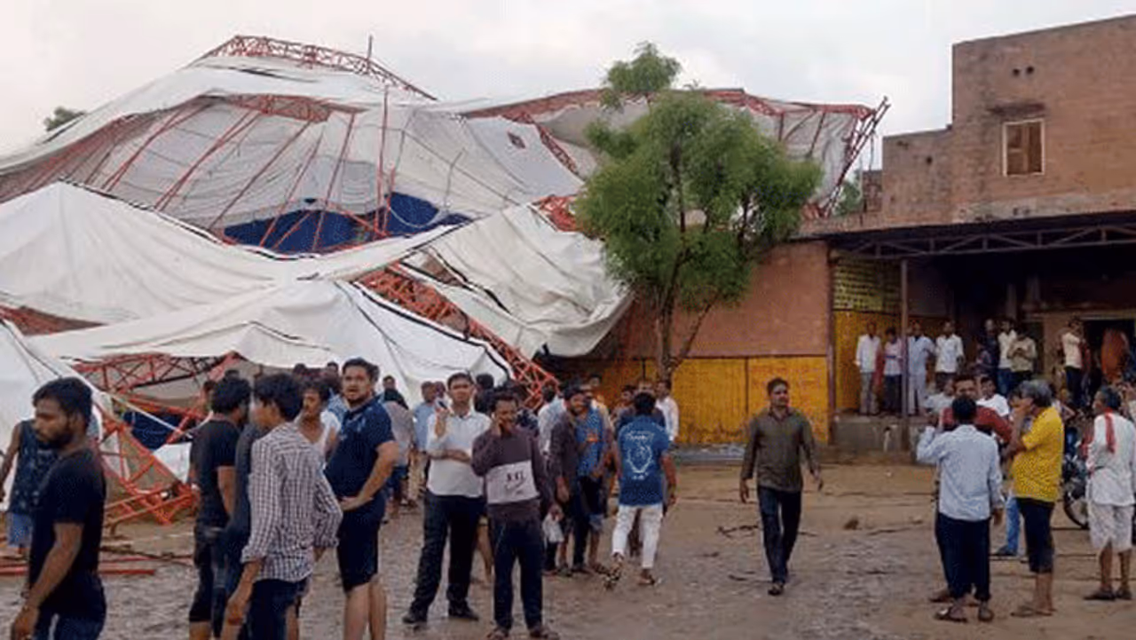 ராஜஸ்தானில் பலத்த காற்று காரணமாக பந்தல் சரிந்து விழுந்து விபத்துக்குள்ளானது. இந்த விபத்தில் உயிரிழந்தோரின் எண்ணிக்கை 15-ஆக உயர்ந்துள்ளது.
