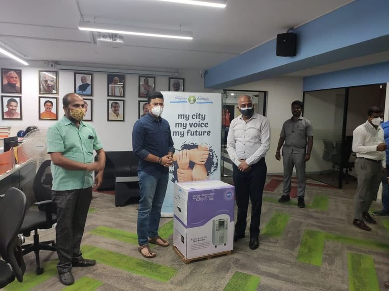 நம்ம பெங்களூரு ஃபௌண்டேஷனுடன் இணைந்து ஆக்ஸிஜன் தேவைப்படும் நோயாளிகளை கண்டறிந்து உதவி செய்துவருகிறார் தேஜஸ்வி சூர்யா. அதனால் தான் அவரிடம் 15 ஆக்ஸிஜன் செறிவூட்டிகளை வழங்கியுள்ளார் ராஜீவ் சந்திரசேகர்.