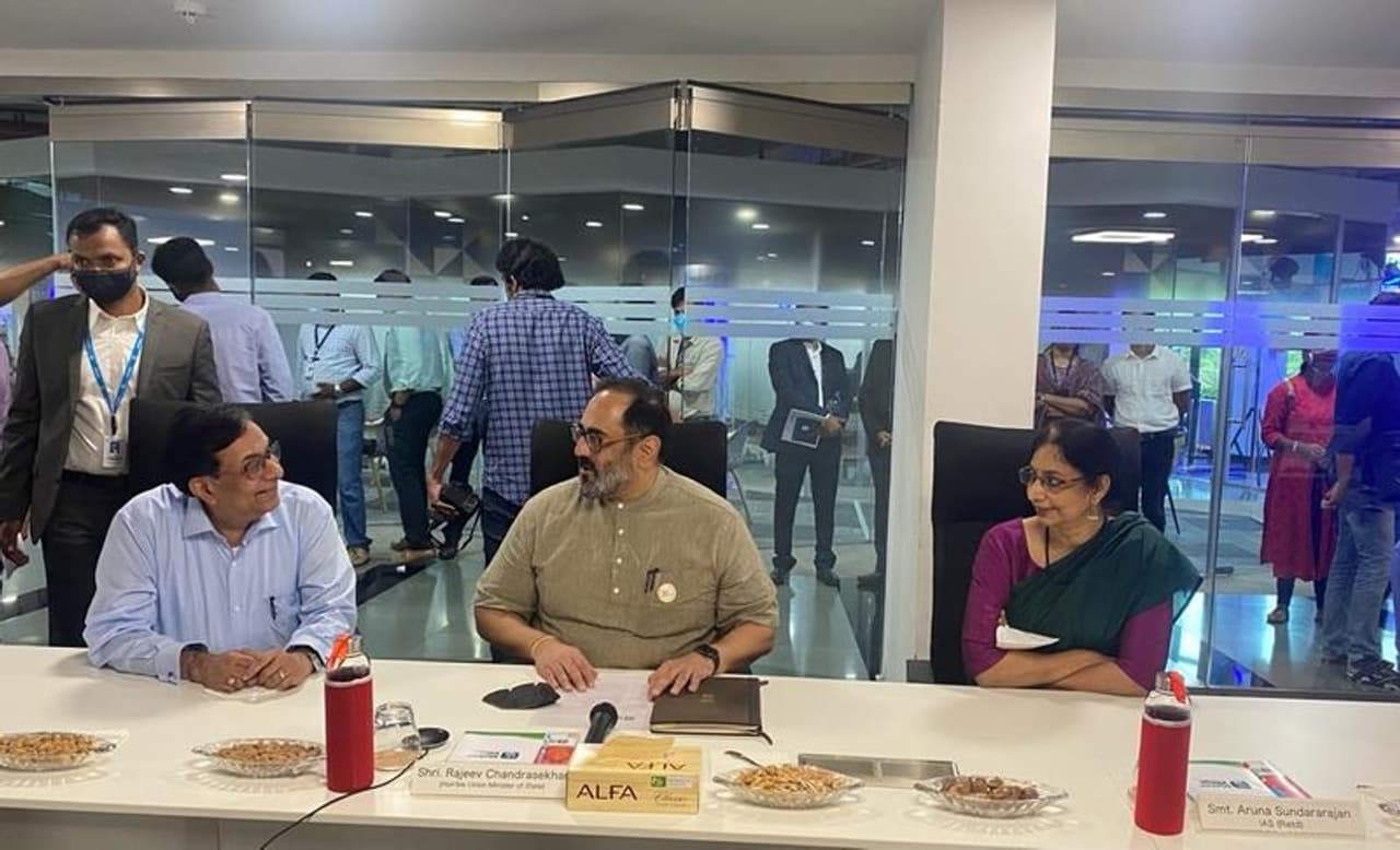 கொச்சியில் உள்ள கின்ஃப்ரா ஹைடெக் பூங்காவில் உள்ள மேக்கர்ஸ் கிராமத்திற்குச் சென்ற திறன் மேம்பாடு, தொழில்முனைவோர் மற்றும் தகவல் தொழில்நுட்பத் துறை இணை அமைச்சருமான ராஜீவ் சந்திரசேகர், ஸ்டார்ட்அப் நிறுவனங்கள், தொழில்முனைவோர் மற்றும் பிற தொழில்துறை பிரதிநிதிகளை சந்தித்து பேசினார்.