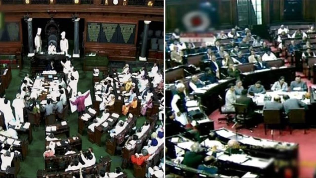 இதை ஏற்றுக்கொள்ளாத எதிர்க்கட்சிகள் அவையின் மையப்பகுதிக்கு வந்து கோஷங்கள் எழுப்பி, அமளியில் ஈடுபட்டனர்.