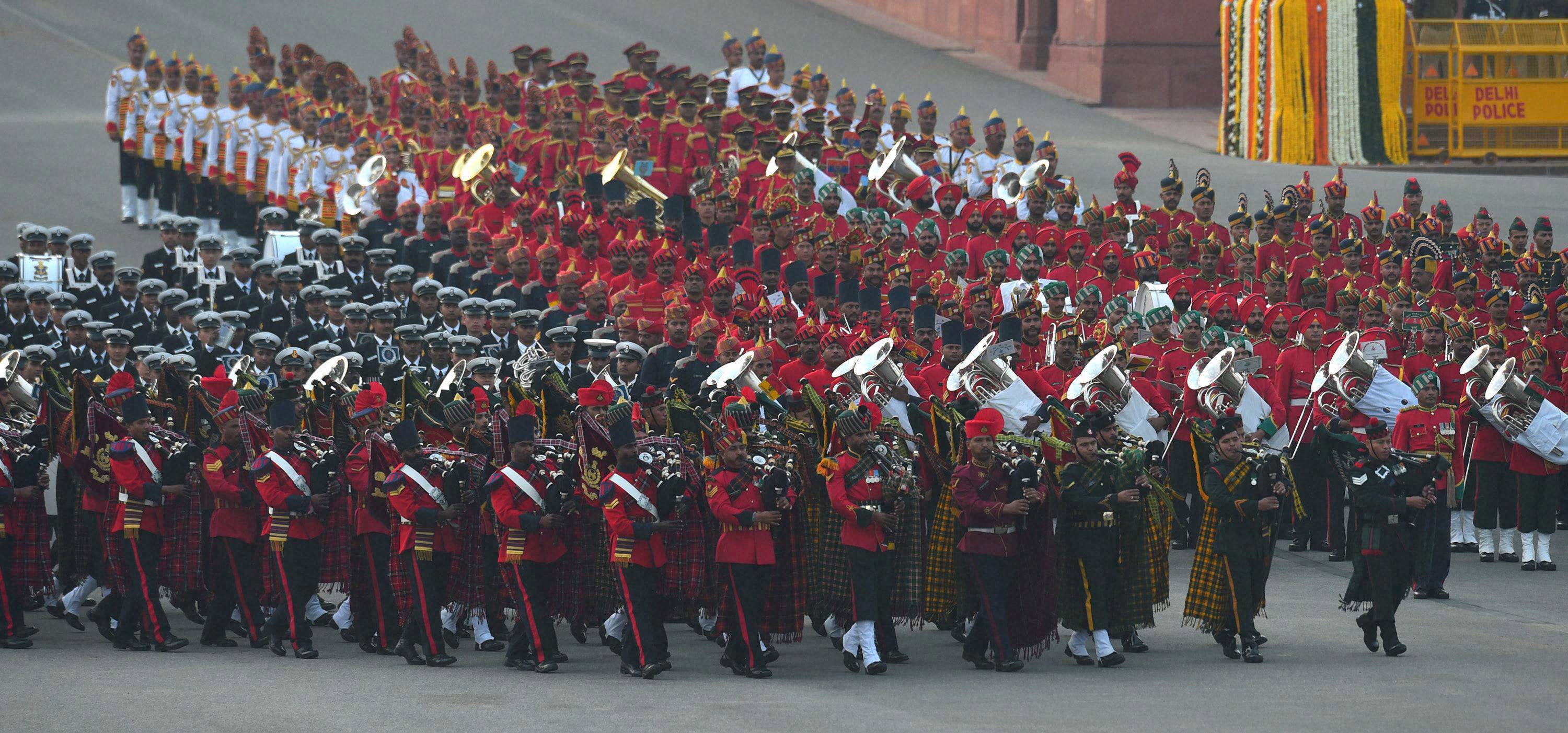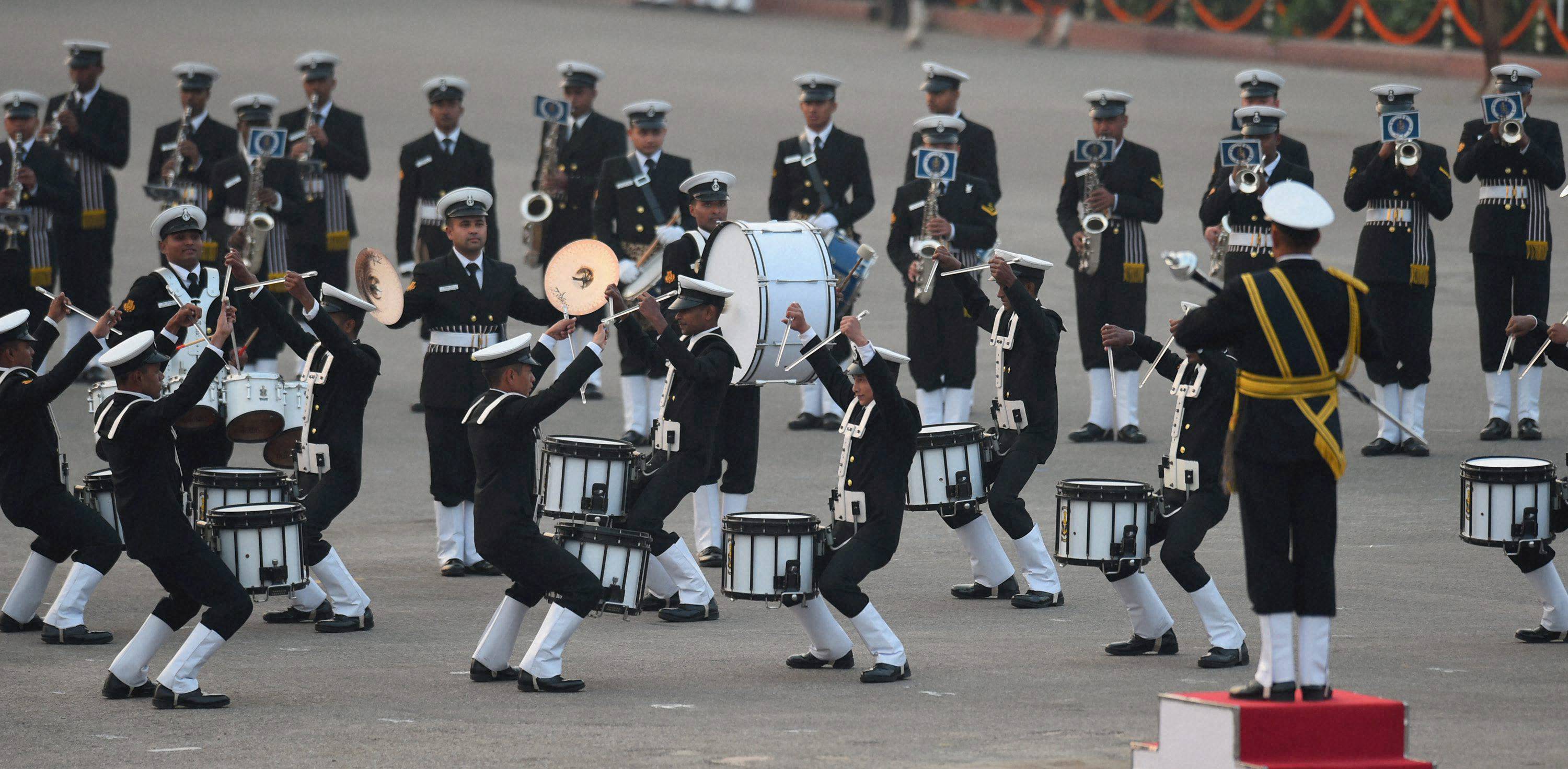 இந்த நிகழ்ச்சி மாலை 4.45 மணியளவி தொடங்கியது. மொத்தம் ராணுவத்தை சேர்ந்த பல்வேறு இசை வாத்தியங்கள் இசைக்கப்பட்டன.