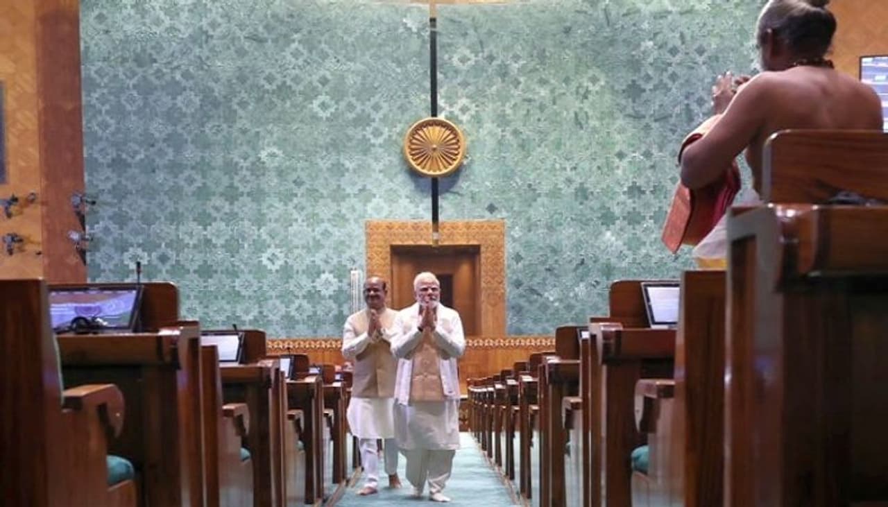 டெல்லியில் 64ஆயிரத்து 500 சதுர அடியில் , முக்கோண வடிவில், 4 மாடிகளுடன் அமைக்கப்பட்டுள்ள புதிய நாடாளுமன்ற கட்டடத்தை பிரதமர் மோடி இன்று திறந்து வைக்கிறார். இதற்காக புதிய நாடாளுமன்றக் கட்டிடம் அமைந்துள்ள இடத்திற்கு வந்த பிரதமர் மோடி, மக்களவை சபாநாயகருடன் வளாகத்தில் அமைக்கப்பட்டுள்ள மகாத்மா காந்தி சிலைக்கு மலர்தூவி மரியாதை செலுத்தினார்.