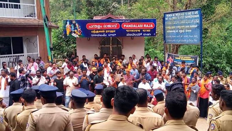 போலீசார் மீது அவர்கள் கற்களைக் கொண்டு தாக்கினர். இதனால் அப்பகுதியில் பரபரப்பு ஏற்பட்டது. பதற்றமான சூழலை அடுத்து சபரிமலை சுற்றுவட்டார பகுதியில் 144 தடை உத்தரவு போடப்பட்டது. இந்த தடை உத்தரவு வரும் 22 ஆம் தேதி வரை இருக்கும். உச்சநீதிமன்ற உத்தரவை அடுத்து, பத்தனம்திட்டா பகுதியில் சபரிமலைக்கு வந்த 45 வயது பெண் பக்தர் தடுத்து நிறுத்தப்பட்டு, திருப்பி அனுப்பப்பட்டனர். செய்தி சேகரிக்க வந்த இளவயது பெண் பத்திரிகையாளர்கள் இருவரும் திருப்பி அனுப்பப்பட்டுள்ளனர்.
