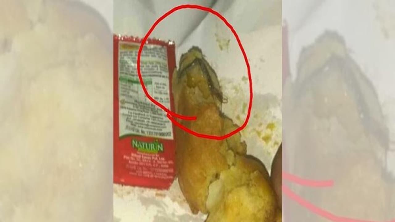 அதன்பின் ஒரு பயணிக்கு பல்லி பிரியானி வழங்கப்பட்ட நிலையில், இப்போது பூச்சி பக்கோடா பரிமாறப்பட்டுள்ளது.