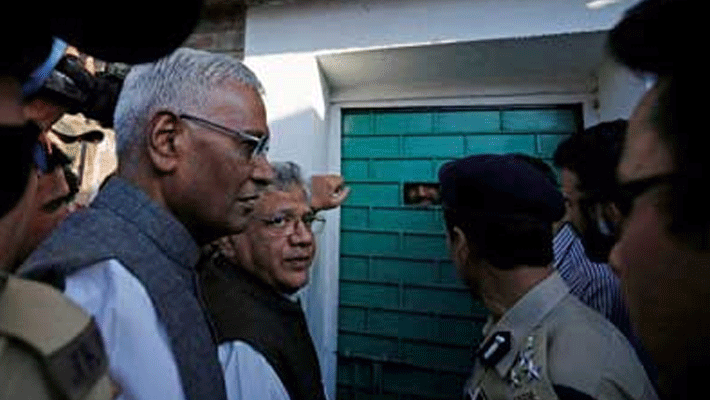 காஷ்மீர் சென்ற கம்யூனிஸ்ட் தலைவர்கள் சீதாராம் யெச்சூரி மற்றும் டி.ராஜா ஆகியோர் தடுத்து நிறுத்தப்பட்ட சம்பவம் பரபரப்பை ஏற்படுத்தியுள்ளது.