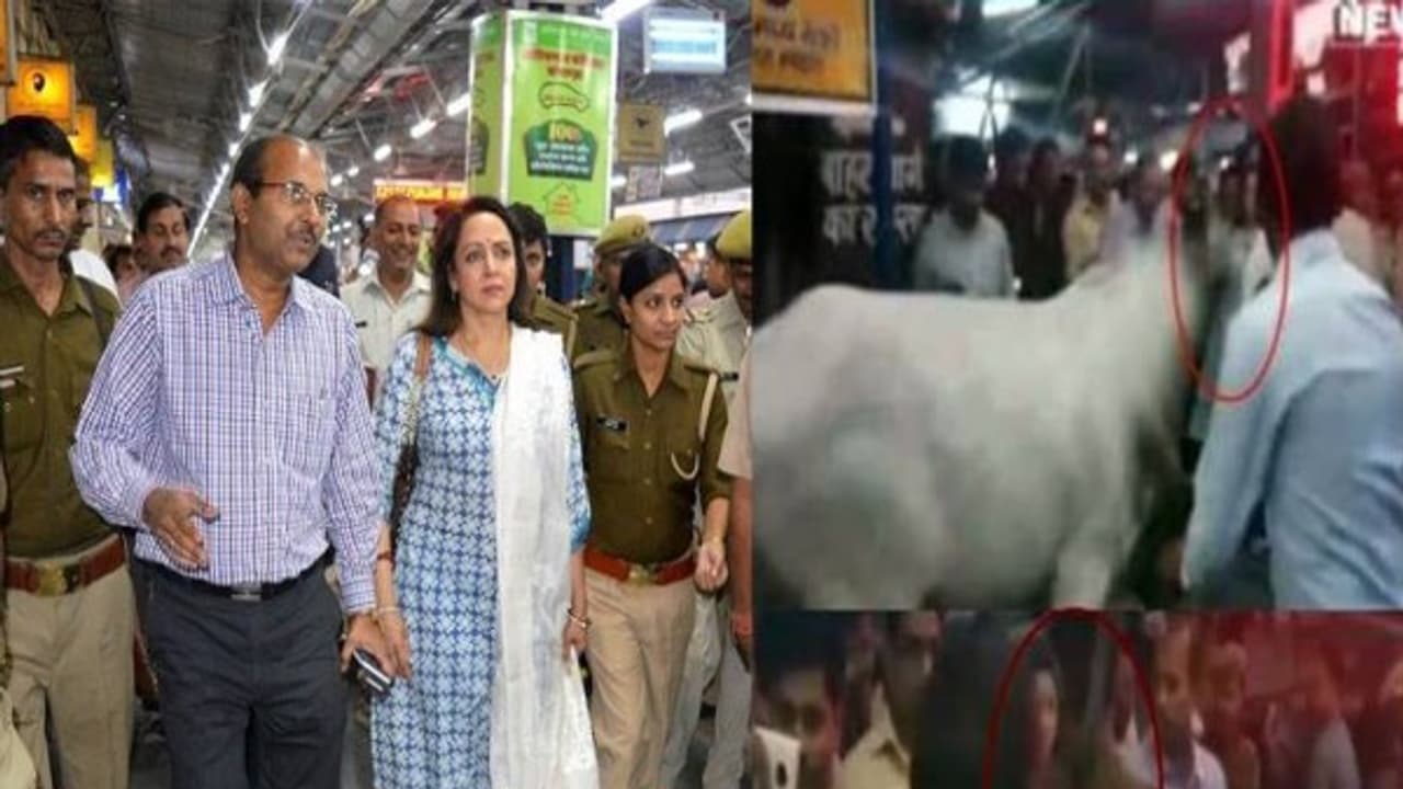 உ.பி.யின் மதுரா தொகுதியைச் சேர்ந்த பாஜக., எம்.பி. ஹேமமாலினி இரு தினங்களுக்கு முன்னர், மதுரா ரயில் நிலையத்தை சீரமைப்பதற்கான சாத்தியக்கூறுகள் குறித்து ஆய்வு செய்ய வந்தார். அப்போது ரயில் நிலையத்தில் இருந்த காளை ஒன்று, ஹேமமாலினி இருக்கும் இடத்தைத் தேடி வந்து, அவரைத் தாக்க முயன்றது. அப்போது உடன் இருந்த பாஜக.,வினர் காளையை விரட்ட முயன்றனர். ஆனால், அதையும் மீறி வந்தது காளை. அப்போது, பாதுகாவலர்கள் அவரை பத்திரமாக அழைத்துச் சென்றனர். எனவே அவர் காளையின் தாக்குதலில் இருந்து தப்பிவிட்டார்.