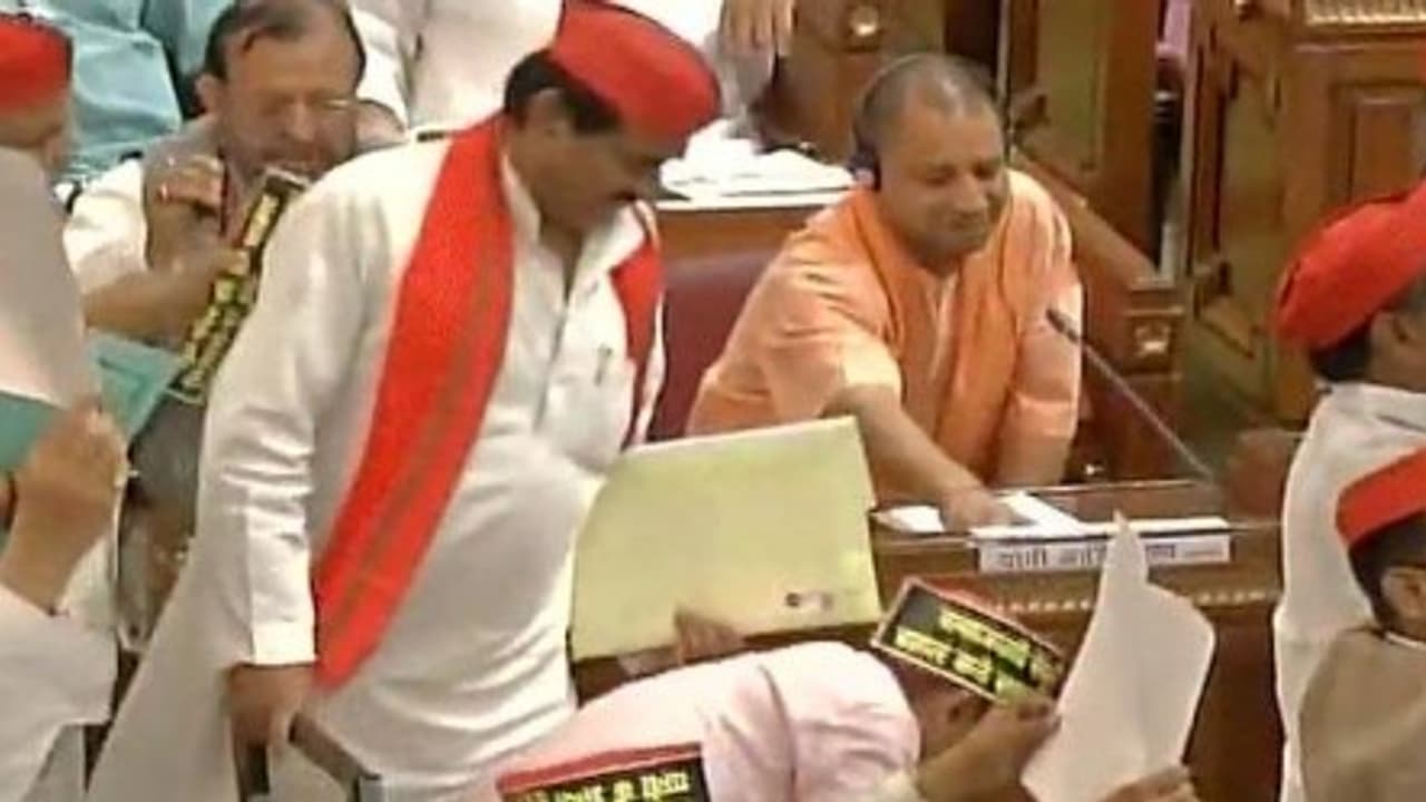 ஆனால், தொடக்கத்தில் இருந்தே எதிர்க்கட்சிகளான காங்கிரஸ், சமாஜ்வாதி, பகுஜன் சமாஜ் கட்சியின் எம்.எல்.ஏ.க்கள் கடும் கூச்சலில் ஈடுபட்டனர்.