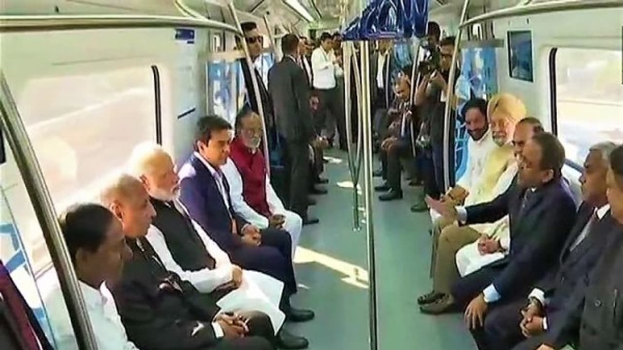 மியாபூர் ரெயில்நிலையத்தில் இருந்து குக்காட்பள்ளி ரெயில் நிலையம் வரை பிரதமர் மோடி, தெலங்கானா முதல்வர் கே.சந்திரசேகர் ராவ், அமைச்சர்கள் உள்ளிட்டோர் பயணம் மேற்கொண்டனர்.