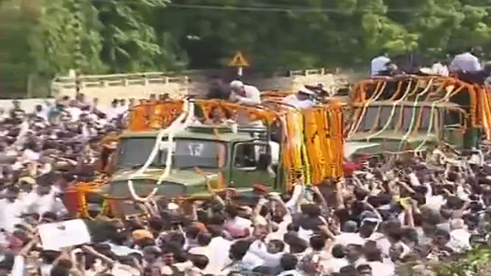மறைந்த முன்னாள் பிரதமர் வாஜ்பாயின் இறுதி ஊர்வலம் தொடங்கியது. அலங்கரிக்கப்பட்ட ராணுவ வாகனத்தில் வாஜ்பாய் உடல் கொண்டு செல்லப்படுகிறது. வாஜ்பாய் இறுதி ஊர்வலத்தில் பிரதமர் மோடி, அமித்ஷா, அத்வானி, மத்திய அமைச்சர்கள் மற்றும் பாஜக முன்னணி தலைவர்கள் பலர் பங்கேற்றுள்ளனர். மேலும் ஆயிரக்கணக்கான பொதுமக்கள் வாஜ்பாய் இறுதி ஊர்வலத்தில் பங்கேற்றுள்ளனர். முன்னாள் பிரதமர் வாஜ்பாயை புகழ்ந்து தொண்டர்கள் முழக்கம் எழுப்பி வருகின்றன.