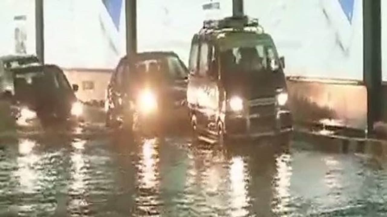 இதனால் விமான ஓடுபாதையில் தண்ணீர் தேங்கி இருப்பதால் விமான போக்குவரத்து தற்காலிகமாக நிறுத்தி வைக்கப்பட்டுள்ளது.