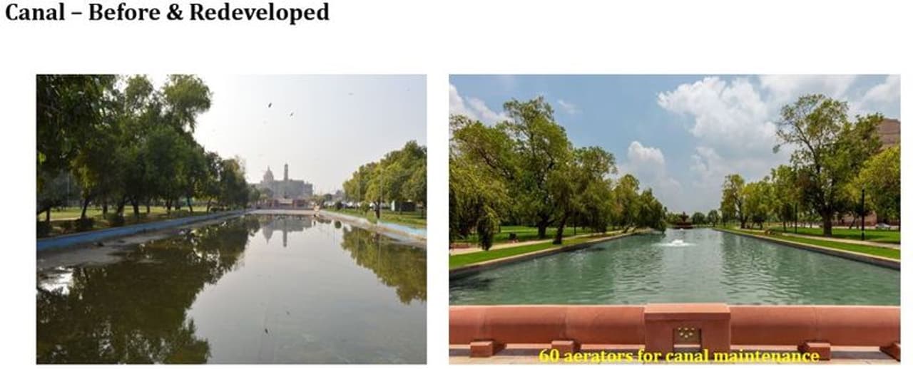 மத்திய விஸ்தா திட்டத்தின் ஒருபகுதியாக விஜய் சவுக் முதல் இந்தியா கேட் வரையிலான பகுதிகள் புதுப்பிக்கும் பணிகள் முடிந்துள்ளன