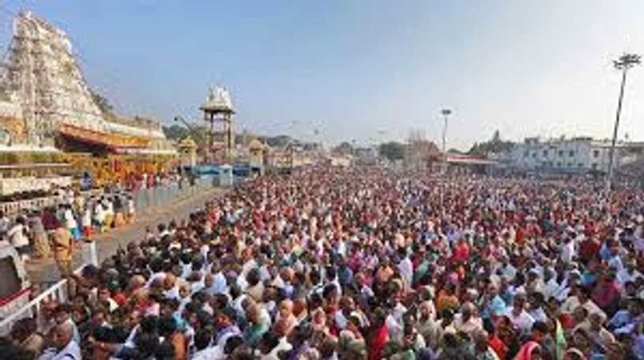 திருப்பதியில் உள்ள வைகுண்டம் காத்திருப்பு வரிசைக்கு வெளியே 4 கி.மீ தொலைவு வரை பக்தர்கள் காத்திருக்கிறார்கள். நாராயணகிரி கார்டன் பகுதியில் உள்ள அரங்கில் ஏறக்குறைய 15 ஆயிரம் பக்தர்கள் காத்திருப்பதால் அரங்கு நிரம்பி வழிகிறது.