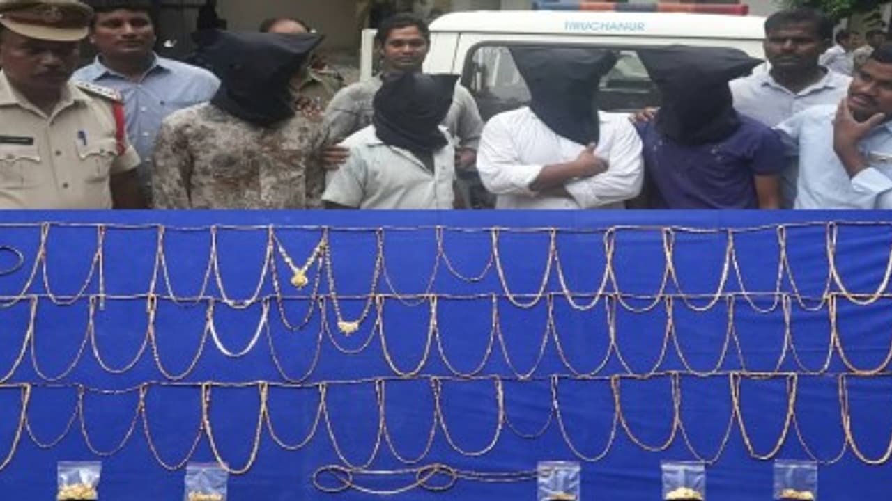 திருப்பதியில் தொடர் வழிப்பறி கொள்ளையில் ஈடுபட்ட 4 பேரை போலீசார் கைது செய்து, அவர்களிடமிருந்து ரூ.50 லட்சம் மதிப்புள்ள 1.5 கிலோ தங்க நகைகளை பறிமுதல் செய்தனர்.
