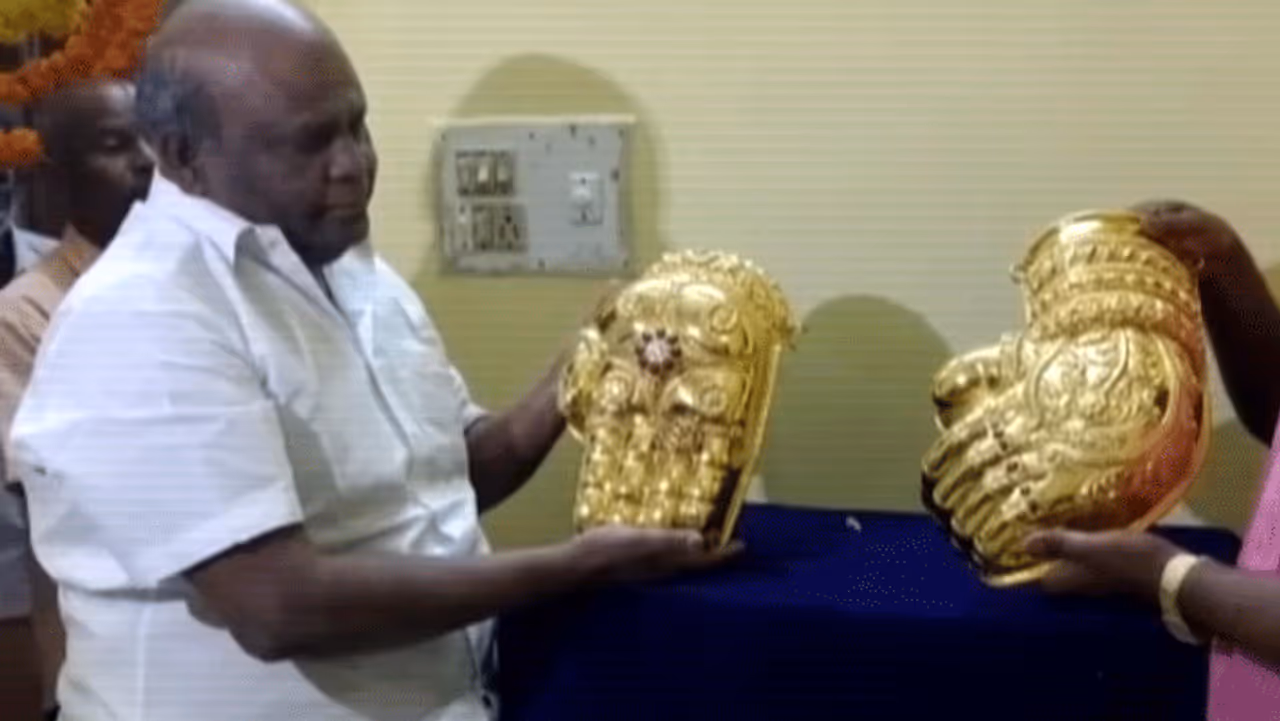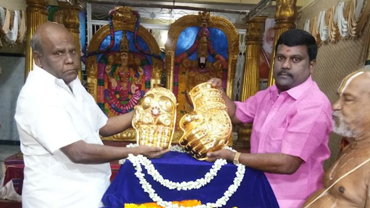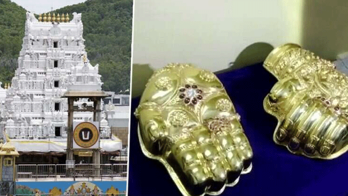 திருப்பதி ஏழுமலையானுக்கு 2.5 கோடி மதிப்பிலான தங்க கை கவசங்களை தமிழக பக்தர் காணிக்கை அளித்துள்ளார்.