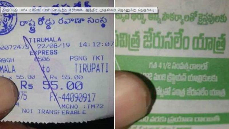 திருப்பதியில் இருந்து திருமலைக்குச் செல்லும் ஆந்திர அரசு பேருந்தில், பயணம் செய்பவர்களுக்குக் கொடுக்கும் பேருந்து டிக்கெட்டில் குறிப்பிடப்பட்டு இருக்கும் ஒரு தகவலால் சர்ச்சை வெடித்துள்ளது.