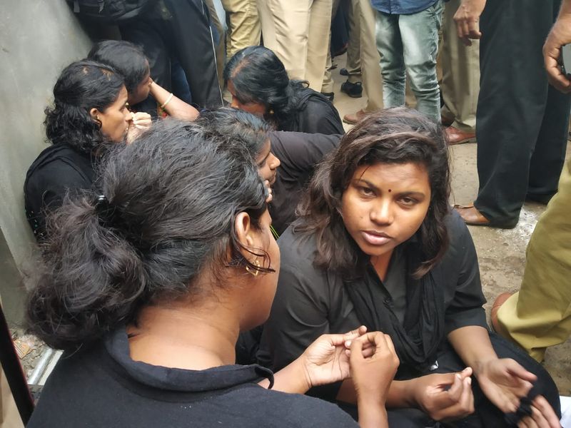 இளம்பெண்கள்வந்தால்தடுத்துநிறுத்துவதற்காகஅய்யப்பபக்தர்கள்தீவிரமாககண்காணித்துவருகிறார்கள். இதனால்பாதுகாப்புகருதிசபரிமலையில்கடந்த 16-ந்தேதிமுதல் 144 தடைஉத்தரவுபோடப்பட்டுஉள்ளது. இந்தசூழலில், நேற்றுமனிதிஎன்றபெண்கள்அமைப்பைச்சேர்ந்தஇளம்பெண்கள்சிலர்அய்யப்பன்கோவிலுக்குசெல்லமுயற்சித்தனர்.ஆனால், சென்னைபெண்கள்சபரிமலைக்குசெல்லஇருப்பதைஅறிந்தஅய்யப்பபக்தர்கள்ஏராளமானபேர்அங்குதிரண்டுவந்துஅவர்களுக்குஎதிராகதீவிரபோராட்டத்தில்ஈடுபட்டனர். சென்னைபெண்களைதொடர்ந்துசெல்லவிடாமல்தடுத்துநிறுத்தினார்கள்.