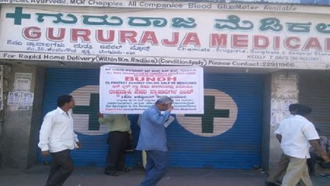 இதனால் ஆன்லைன்மருந்துவணிகத்துக்குஅனுமதிஅளிக்கஇருக்கும்மத்தியஅரசின்முடிவினைஎதிர்த்துஅகிலஇந்தியஅளவில்ஒருநாள்கடைஅடைப்புபோராட்டம் நடைபெற்று வருகிறது.