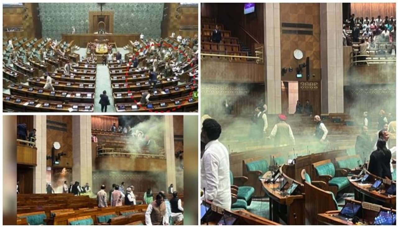 நாடாளுமன்ற மக்களவையில் இன்று மேற்குவங்க பாஜக எம்.பி. காகென் முர்மு பேசிக் கொண்டிருந்தபோது, திடீரென பார்வையாளர்கள் மாடத்தில் இருந்து இருவர் அவைக்குள் குதித்தனர். கையில் மறைத்து வைத்திருந்த மஞ்சள் நிற புகையை வெளியிடும் பொருளை வீசினார்.