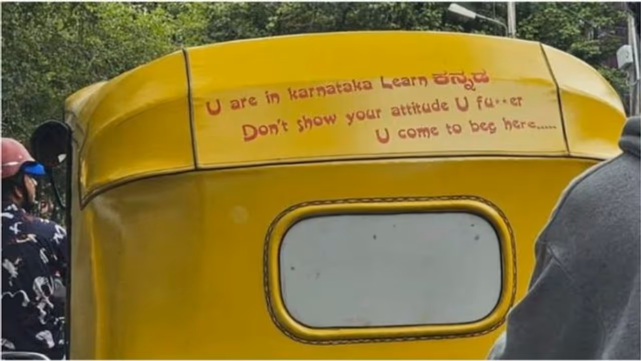 “நீ கர்நாடகாவில் இருக்கிறாய், கன்னடம் கற்றுக்கொள்” என்ற செய்தியுடன் கூடிய ஆட்டோவின் புகைப்படம் சமூக வலைத்தளங்களில் வைரலாகி வருகிறது.
