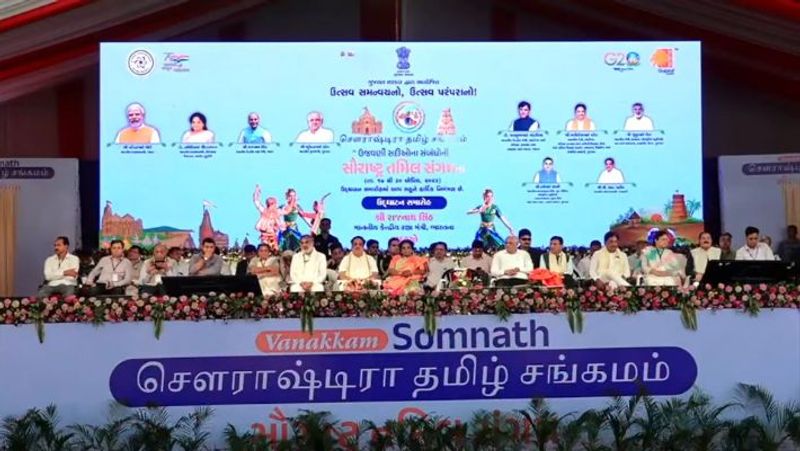 முன்னதாக, அமைச்சர் ராஜ்நாத் சிங் சோம்நாத் கோவிலில் பிரார்த்தனை செய்தார். தற்போது மத்திய அமைச்சர் ராஜ்நாத் சிங் சோம்நாத்தில் சௌராஷ்டிரா தமிழ் சங்கத்தை தொடங்கி வைத்தார். இதில், குஜராத் முதல்வர் பூபேந்திர படேல், தெலுங்கானா ஆளுநர் தமிழிசை சௌந்தரராஜன் ஆகியோர் கலந்து கொண்டனர்.