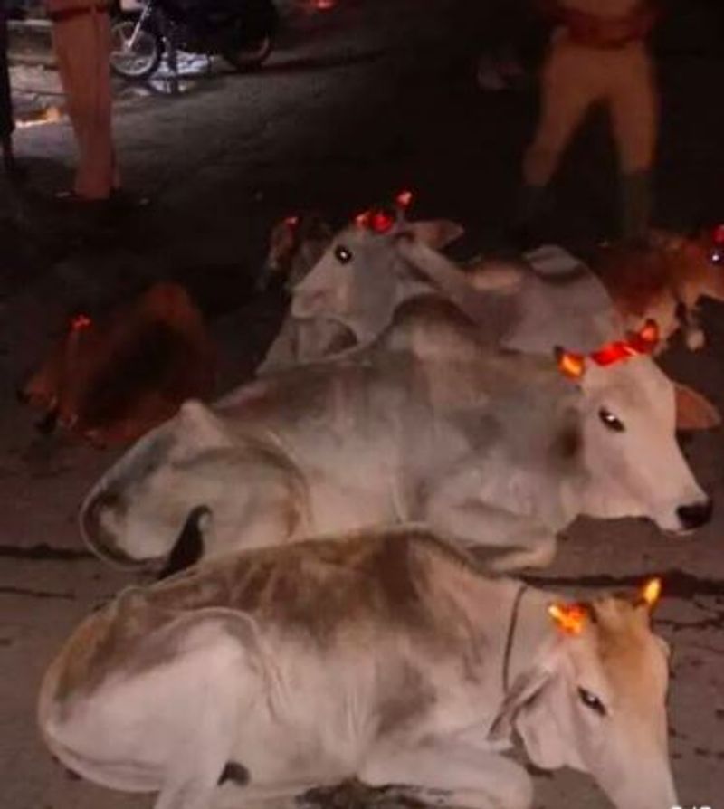 அதாவது இரவில் திரிந்துகொண்டிருக்கும் மாடுகள் தலையில் சிவப்பு நிற லைட்டுகளை பொருந்தியுள்ளது. இதனால் தொலைவில் வரும் போதே வாகன ஓட்டிகள், அங்கு மாடுகள் உள்ளதை சுதாரித்து கொள்ள முடியும். மாடுகளால் ஏற்படும் விபத்துகளும் தவிர்க்கப்படும். உ.பி அரசின் இந்த முயற்சிக்கு விலங்கு ஆர்வலர்களிடம், மக்களிடமும் பாராட்டுக்கள் கிடைத்து வருகிறது.