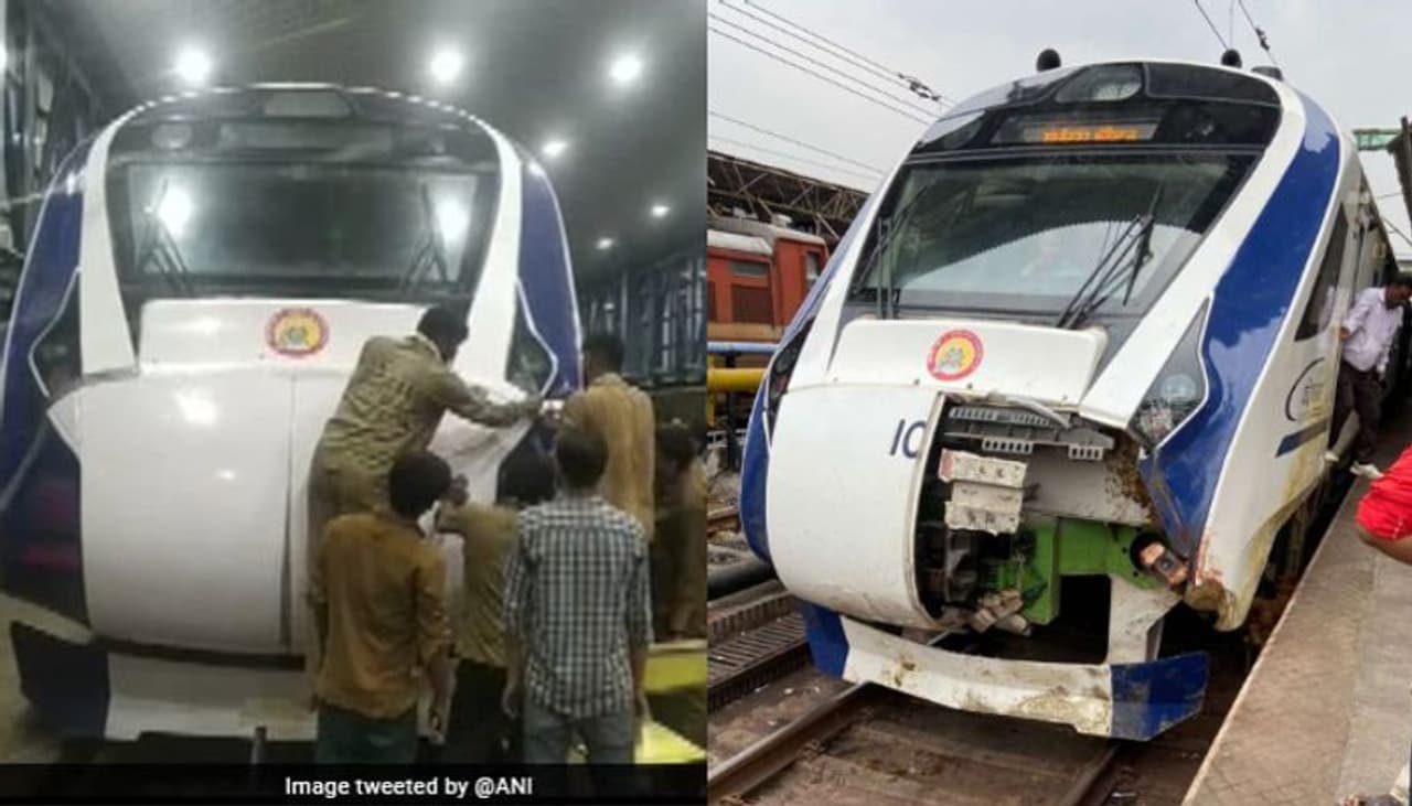 வந்தே பாரத் எக்ஸ்பிரஸ் ரயில் எருமை மாடுகள் மீது மீண்டும் மோதி இரண்டாம் முறையாக விபத்துக்குள்ளாகியுள்ளது.