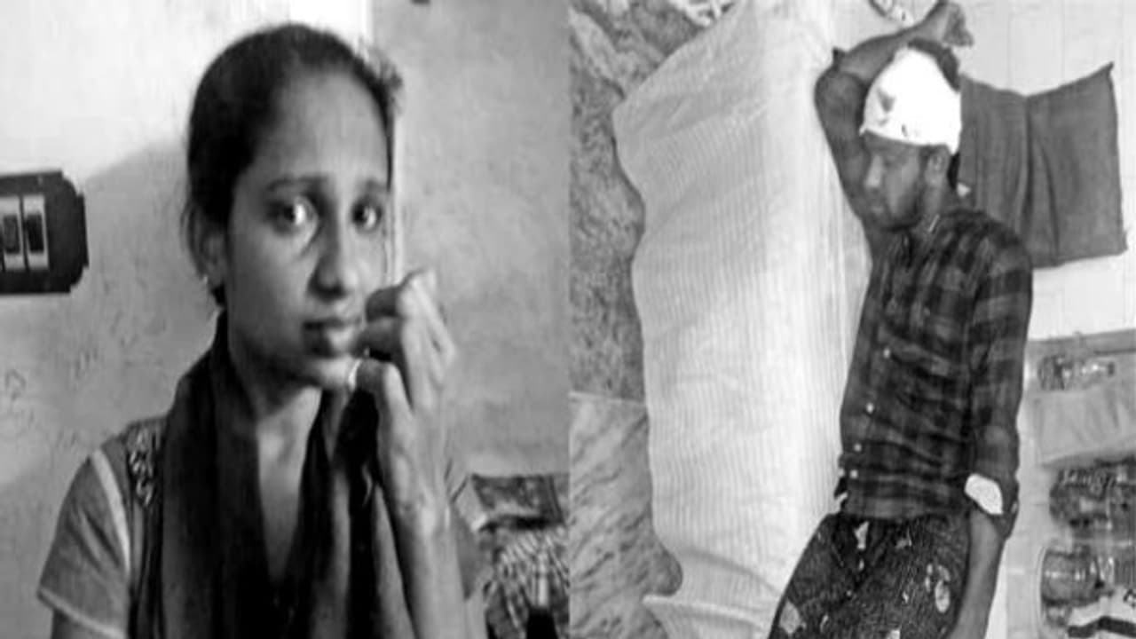 நள்ளிரவு காதல் கணவரை கொடூரமாக அடித்துக் கொண்டிருந்த மனைவியை அப்பகுதி மக்கள் போலீசில் ஒப்படைத்தனர்.
