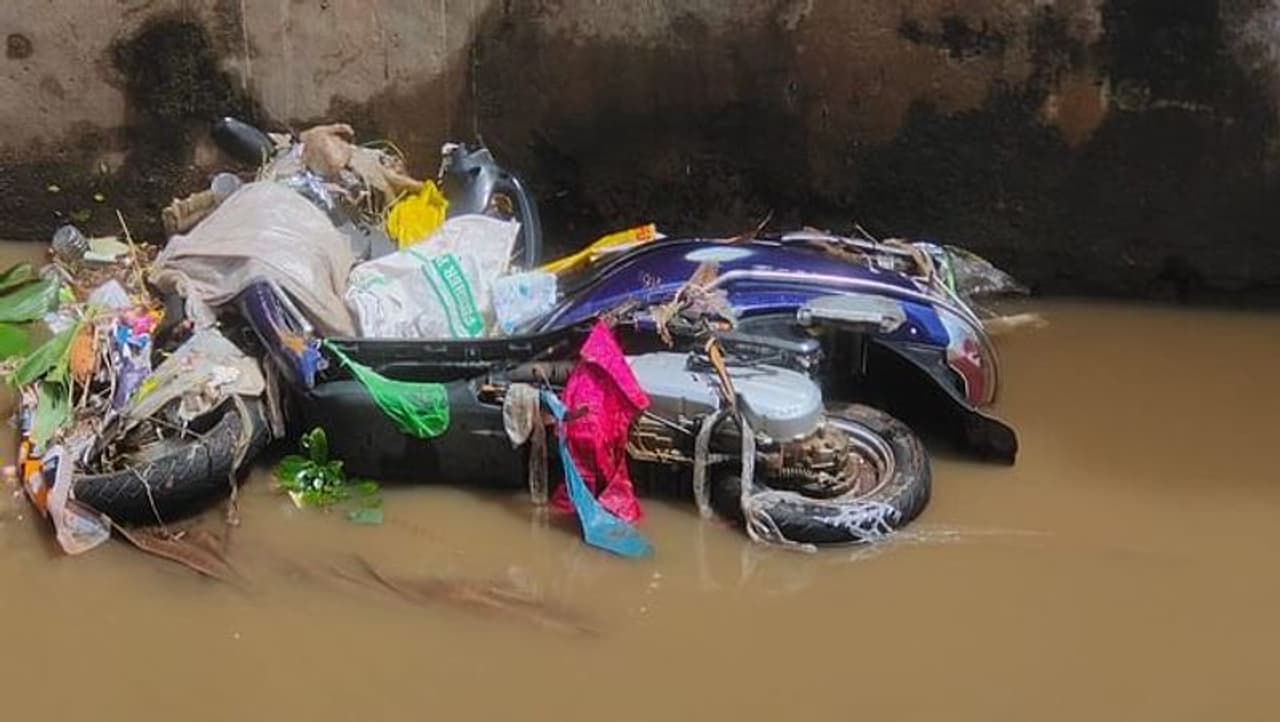 வெள்ள நீரின் வேகத்தில் இருசக்கர வாகனம் இழுக்கப்பட்டுள்ளது, அத்துடன் சேர்ந்து ஹசீனாவும் அடித்துச் செல்லப்பட்டுள்ளார்.