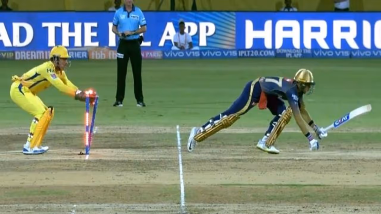 வழக்கமாக மின்னல் வேகத்தில் ஸ்டம்பிங் செய்து எதிரணி வீரர்களை தெறிக்கவிடும் தோனி, இந்த போட்டியிலும் ஒரு மின்னல்வேக ஸ்டம்பிங்கை செய்தார். இளம் வீரர் ஷுப்மன் கில் இந்த முறை தோனியின் ஸ்டம்பிற்கு பழியானார்.