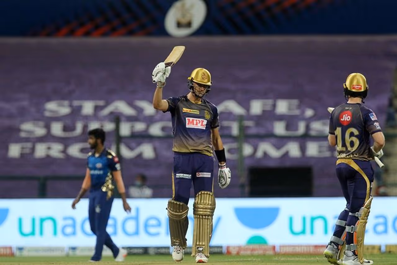 ஆனால் கேகேஆர் அணி பேட்ஸ்மேன்கள் சரியாக ஆடவில்லை. கேகேஆர் அணியின் தொடக்க வீரர் திரிபாதி 7 ரன்களிலும், நிதிஷ் ராணா 5 ரன்களிலும், தினேஷ் கார்த்திக் 4 ரன்களிலும் ஆட்டமிழக்க, கில் 21 ரன்களில் ஆட்டமிழந்தார். ஆண்ட்ரே ரசலுக்கு அருமையான பவுன்ஸர் போட்டு 12 ரன்களில் வீழ்த்தினார் பும்ரா.